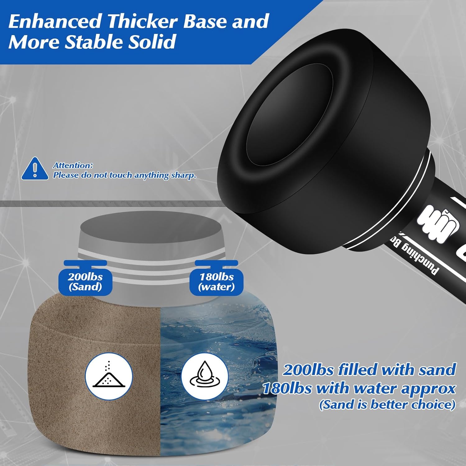 Big Base Boxing Equipment:Be sure to fill the base with half of the water/sand before using the standing punching bag, then use the inflator to inflate, being careful not to overfill. The white cap at the base of the heavy punching bag is the safety valve, which has two layers of seals to prevent air and water leaks