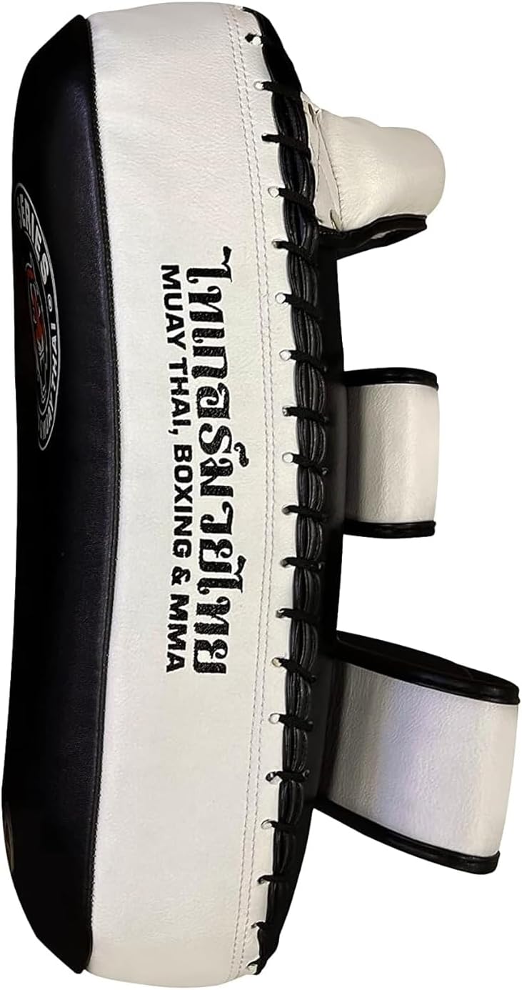 Tiger Pro Thai Pads – Black & White – Pads with Strong Handle Grip, Thai-Inspired Design, 100% Genuine Leather, Coaching Training Boxing MMA Martial Arts Taekwondo Combat Sports (Single) – 2 Color Options