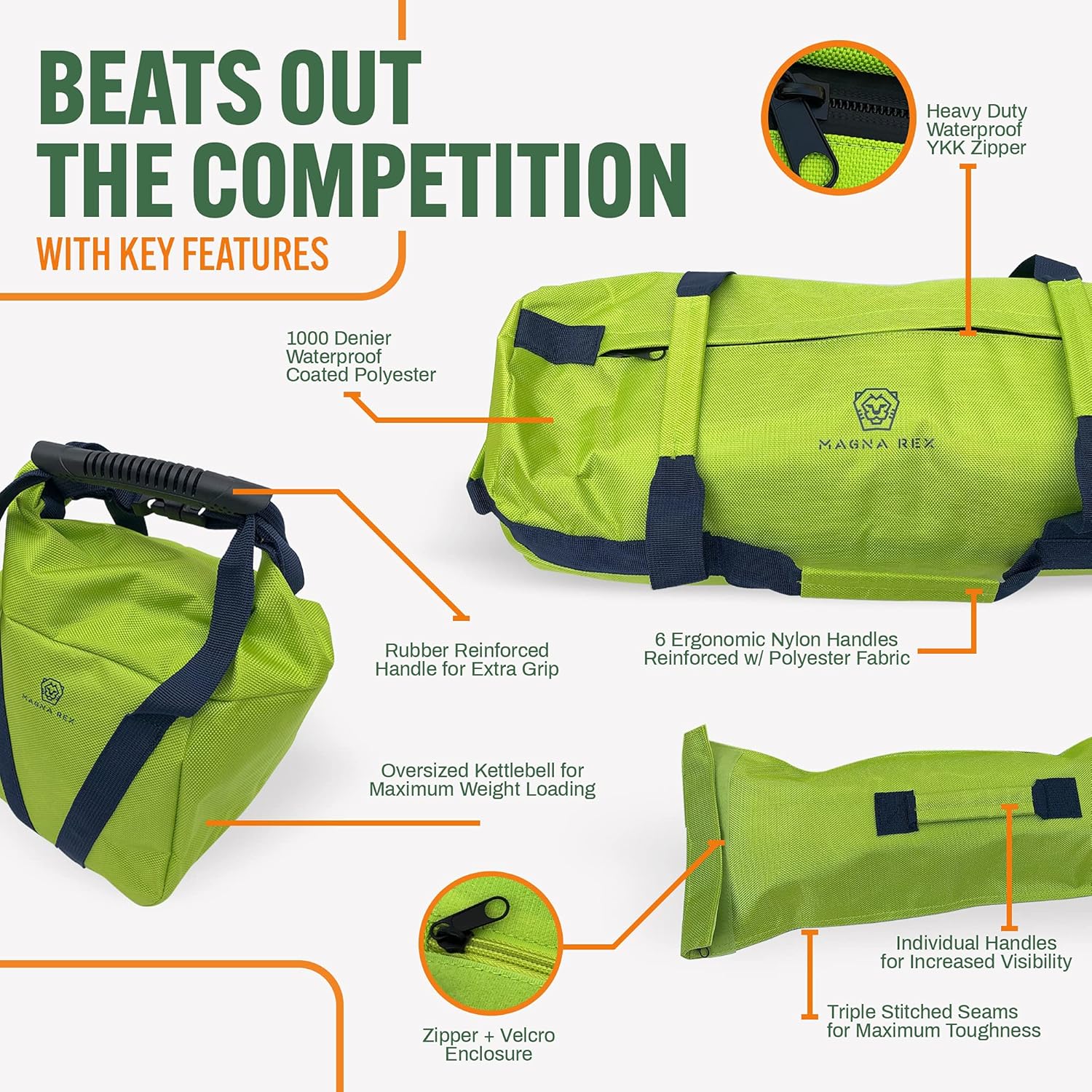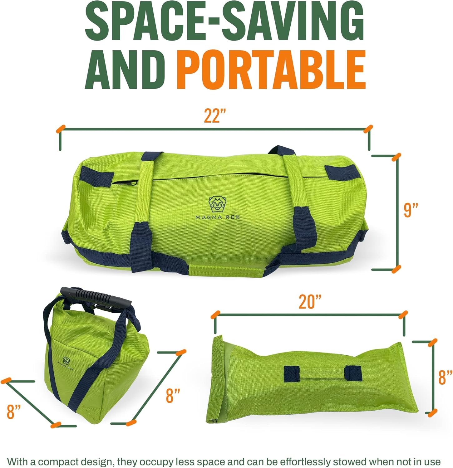 Durable and Long-Lasting: Made of 1000D waterproof polyester with triple stitched nylon reinforced handles. These sandbags for weight training can withstand heavy use and is resistant to tears and punctures.