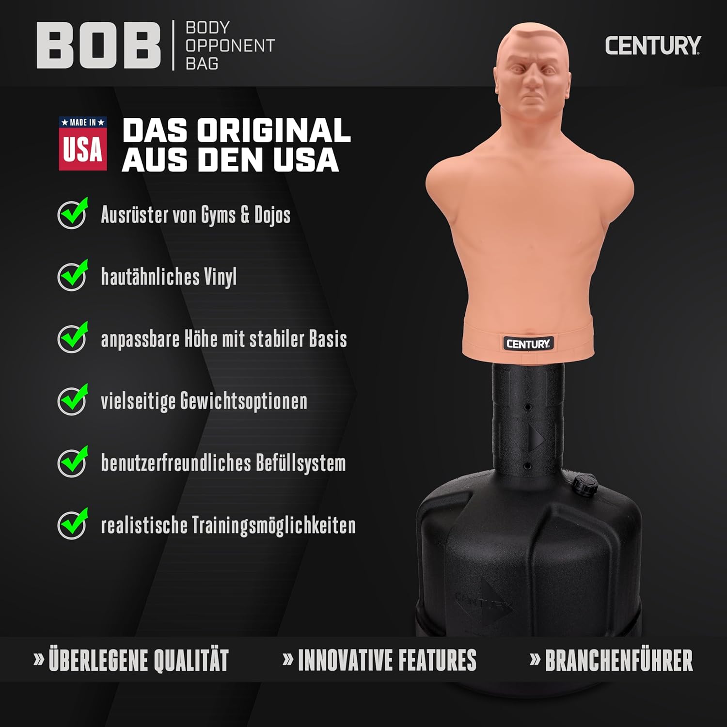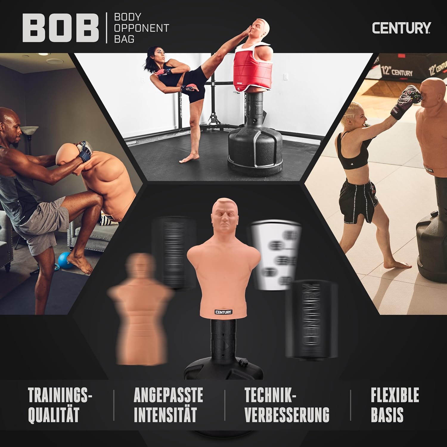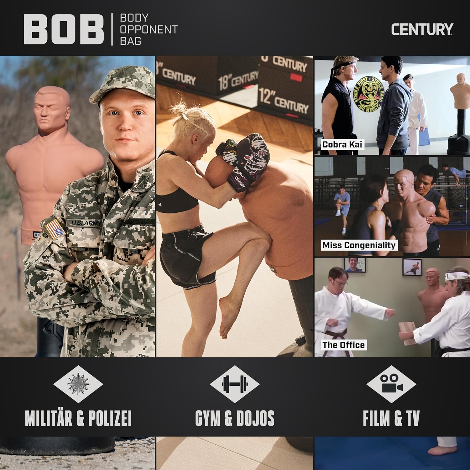 Century is now offering a new Sparring BOB. It is made of a more pliable rubber than the original! The best sparring partner money can buy! A great partner for sparring techniques or target training. Sparring BOB is a full size lifelike mannequin. This price includes BOB and Base.BOB is a registered trademark of Century LLC. The BOB design is a registered trade dress of Century, LLC. BOB 2003 Century, LLC. U.S. Patent #5,624,358. This product not compliant with item 101695 BOB Jacket. Founded by a martial artist, CENTURY started in a one car garage in Oklahoma City. Today we are a company of martial artists with 250 team members, many of whom participate in daily on-site classes that include karate, tae kwon do, Brazilian jiu-jitsu, kung fu san soo, jeet kune do, Cage Fitness, and even yoga. We use the products that we make and sell. We strive every day to live the core values that martial arts teaches including humility, respect, courage, and doing the right thing.