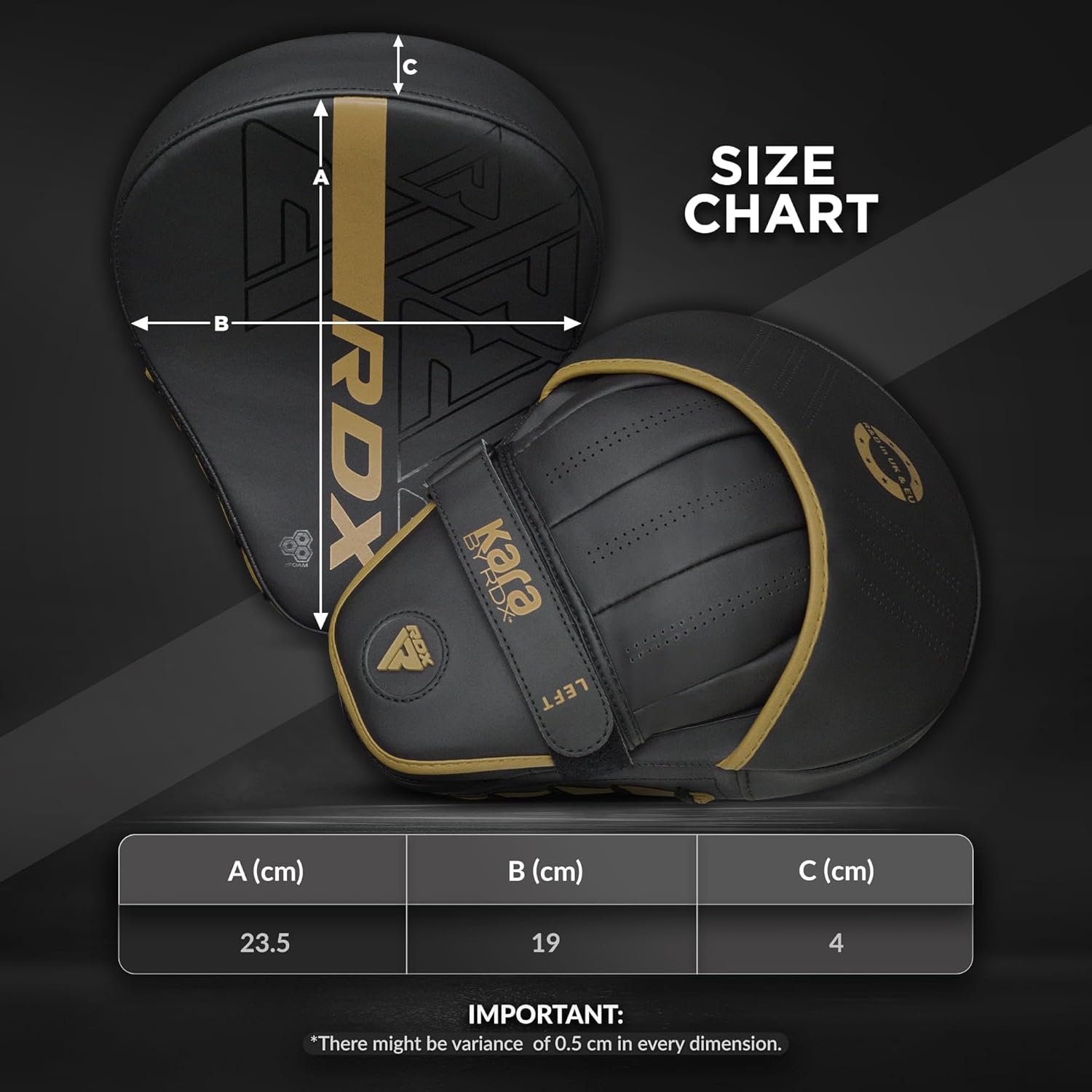 UNYIELDING IRON GRIP By using a combination of the unique Palm Dome in the hand compartments and anatomically curved design of the sparring pads, RDX ensures that the punching focus pads offer a comfortable and well-fitted hold that keeps the pads from slipping or sliding during extensive training sessions.