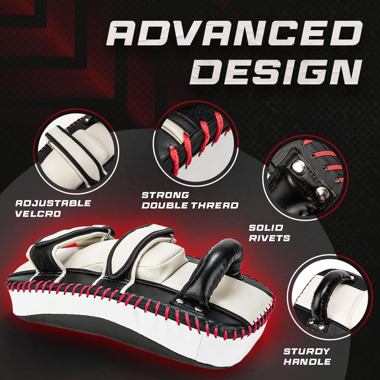5 FOAM LAYERS: Muay thai punch and kick pads are composed of 5 layers from PE and PU pads for durability enhancement and better sound effect