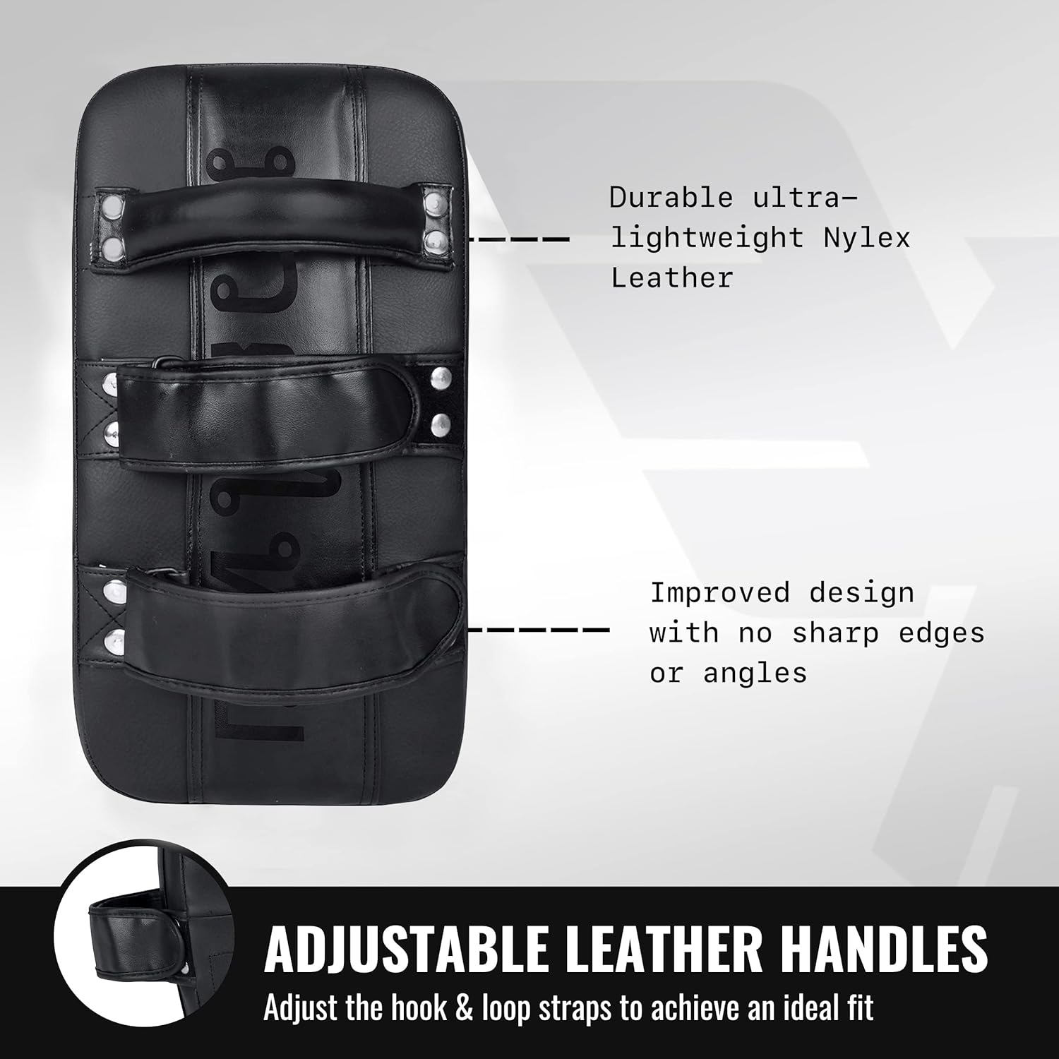 ✅ UNISEX & VERSATILE: Muay thai kick pad shield pair is suitable training equipment for both sexes ages because of their unique design. It excels as Kickboxing, MMA, & Muay Thai kick pads/ training kicking shield.