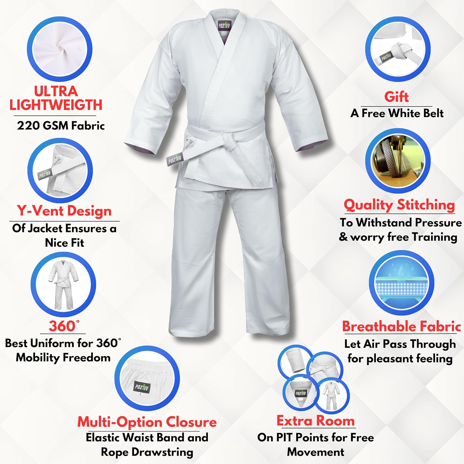Step onto the mat with confidence in our Lightweight Karate Gi, meticulously crafted for practitioners of karate and taekwondo alike. This Karate Uniform Gi is engineered from premium lightweight fabric, this uniform ensures optimal performance during intense training sessions. With its breathable design and freedom of movement, you’ll execute kicks and strikes with precision and ease. Whether you’re a dedicated karate or a taekwondo enthusiast, this our Gi Karate uniform offers the perfect blend of comfort and durability to support your martial arts journey. Complete with a matching belt, our Lightweight Karate Gi embodies the essence of discipline, focus, and determination. Elevate your training experience and unleash your full potential with our premium martial arts uniform.