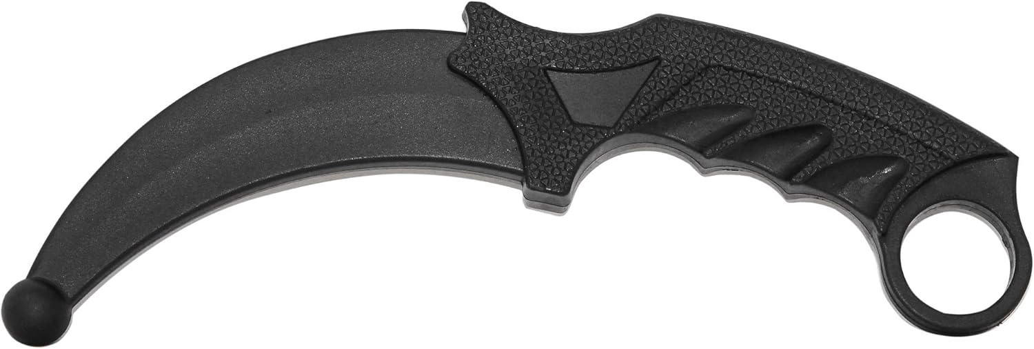 Black Polypropylene blade with round tip Curved handle with finger ring Lead free material 8.75” full length 4.5” blade 4.25″ hilt Color: Black Rounded tip weight: 2.5 oz approximately cheap karambit