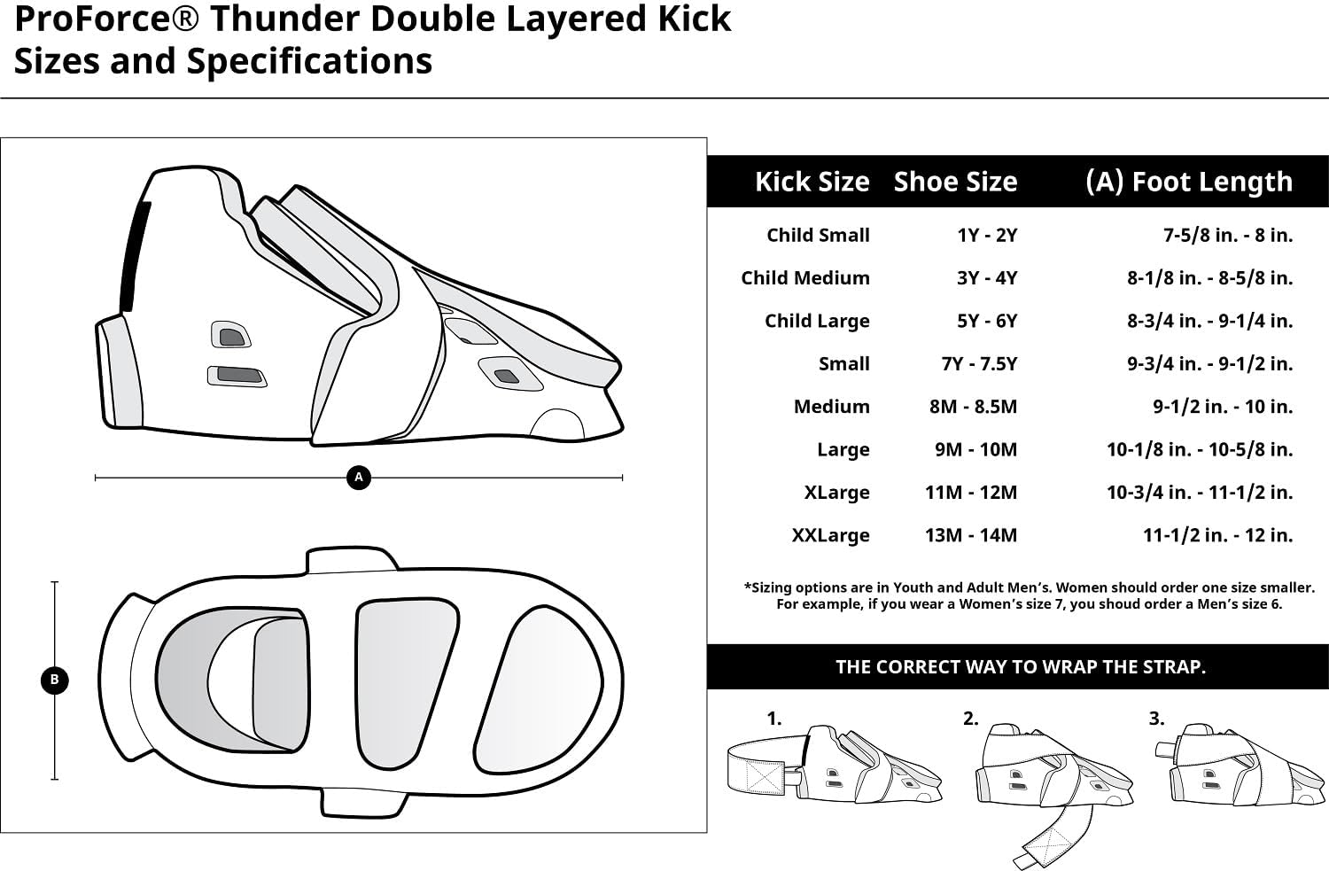 The ProForce Thunder Sparring Gear features double layered padding over high-impact and sensitive areas such as knuckles, instep and ears for even more protection! They offer excellent flexibility and movement, and are well ventilated for better comfort. The hook-and-loop closures provides a snug fit. The headgear and kicks have a base layer thickness of 7/8″ and a double layer thickness of 1-1/4″, while the punches have a 1/2″ base layer and 1″ double layer thickness.