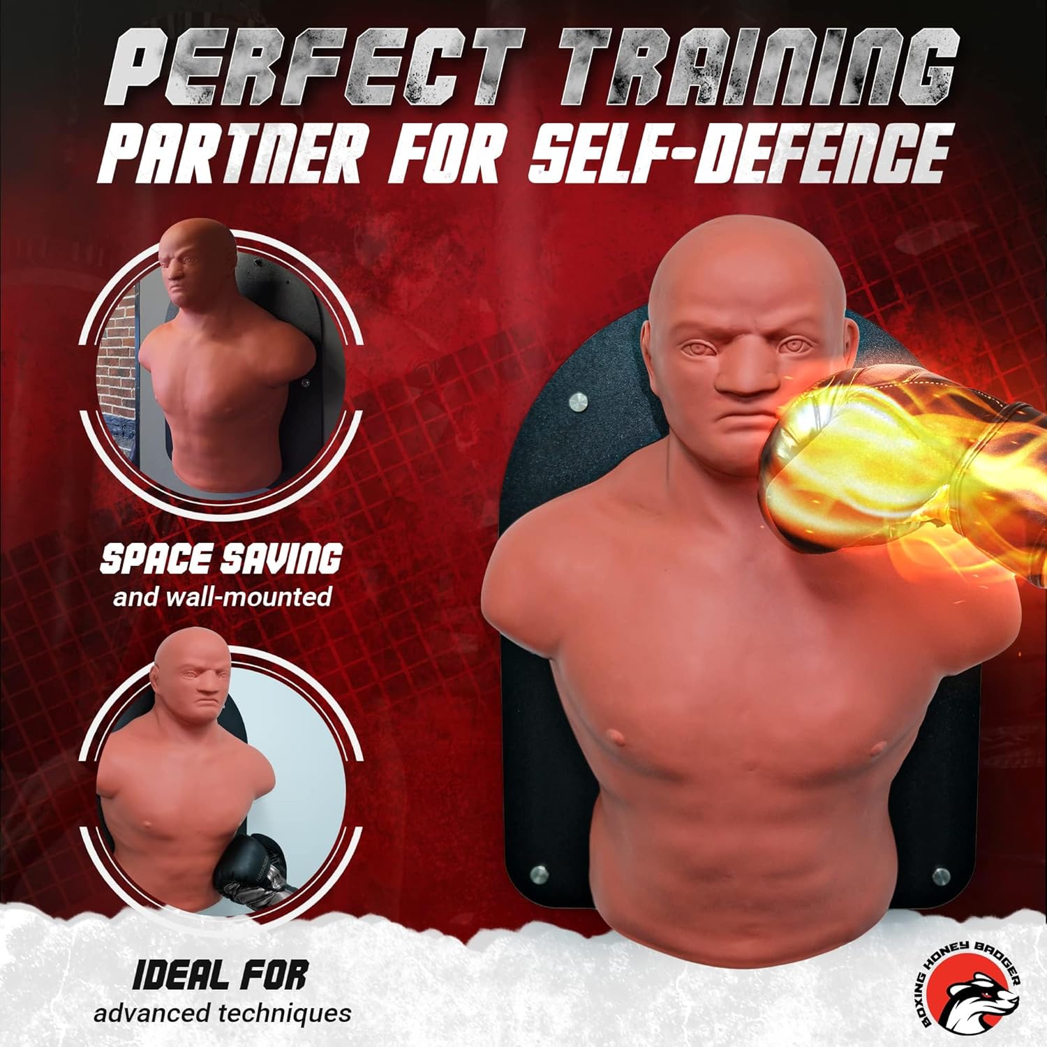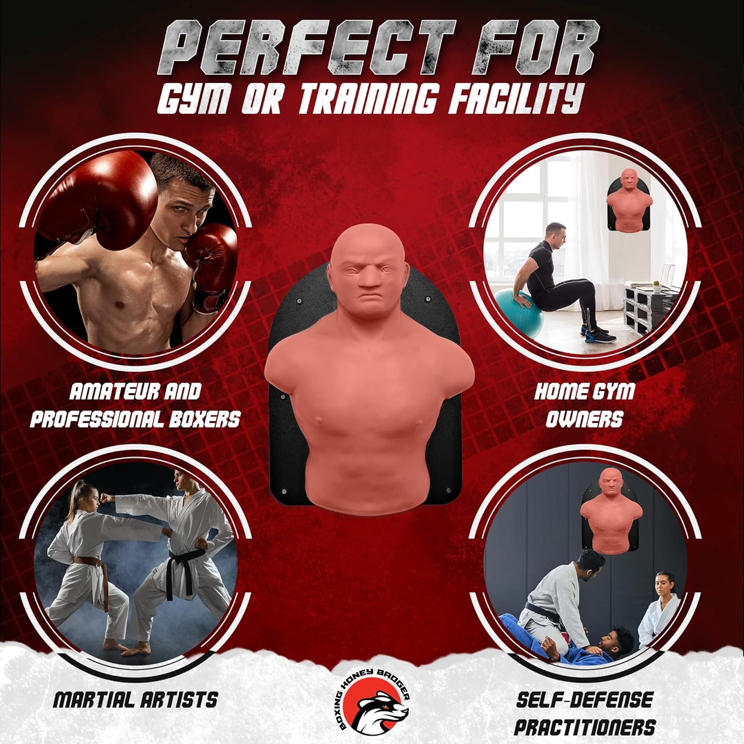 【Reduce Chances of Injury】- Boxing Honey Badger wall-mounted uppercut punching dummy is made of high density rubber, it gives you the feeling of hitting on a real body. More importantly, you have a much less chance of injuring your joints. The head is also super flexible when you hitting it.