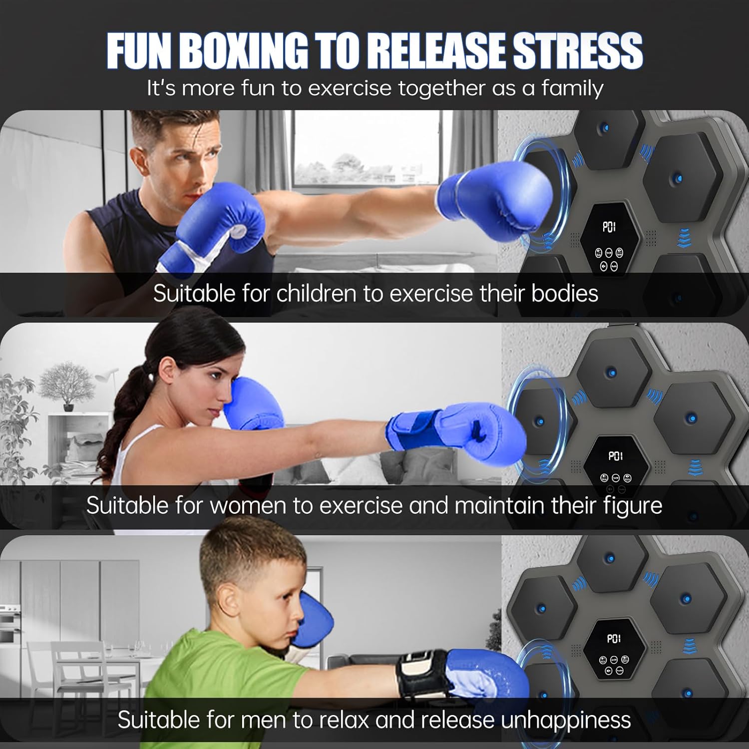 【Fun Fitness Boxing Machine】Suitable for individuals of all ages and skill levels, it offers a complete home workout solution that relieves stress and adds fun and attraction to your training. Immerse yourself in the rhythm and melody for a perfect blend of auditory and visual stimulation in a fun family fitness session.