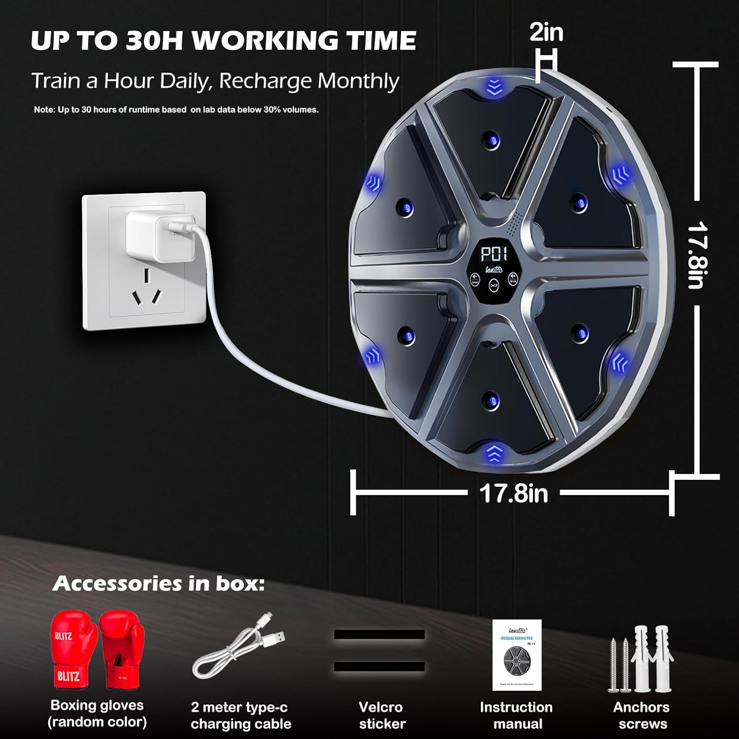 Durable & Long-Lasting Construction: Built and enhanced with silicone striking pads, this music boxing equipment is designed to withstand intense training sessions. The silicone pads provide a superior striking experience, enhancing both performance and longevity compared to traditional PU materials. Additionally, the 2000mAh rechargeable battery ensures longer training sessions without frequent recharges.