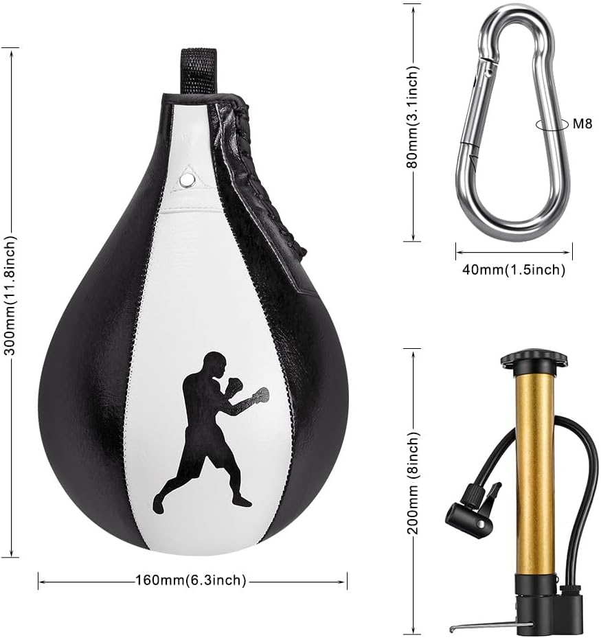 Perfect for Boxing & MMA Training: Our speed bag is ideal for boxing, MMA, Muay Thai and other martial arts training. It helps you develop reflexes, speed and hand-eye coordination while improving your punching accuracy and rhythm. The pear shape design allows you to easily target the bag and get consistent rebounds without losing your tempo.