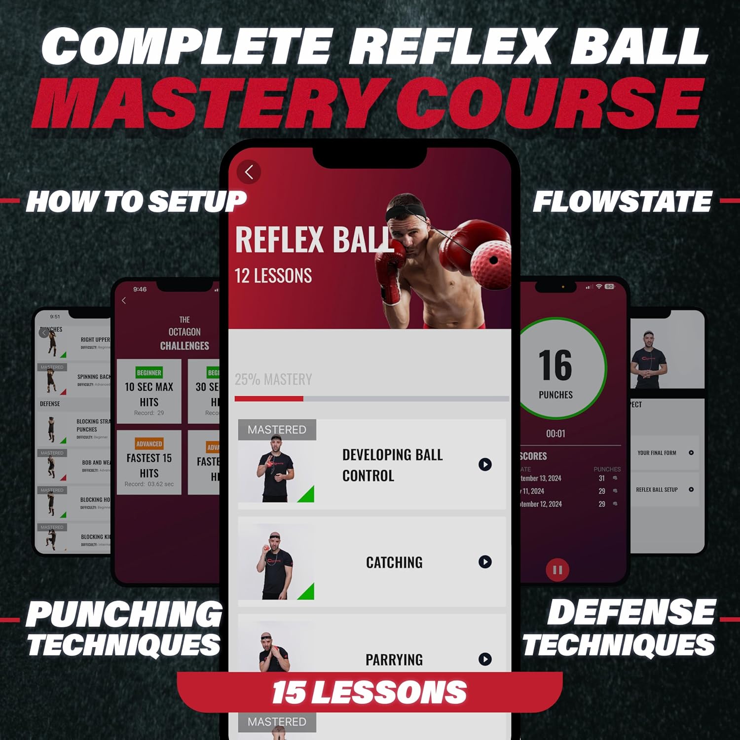ADVANCED REFLEX BALL WITH APP INTEGRATION: Take your training to the next level with our heavier, tougher red reflex ball, now paired with a free app featuring punch counter challenges and a full reflex ball mastery course.