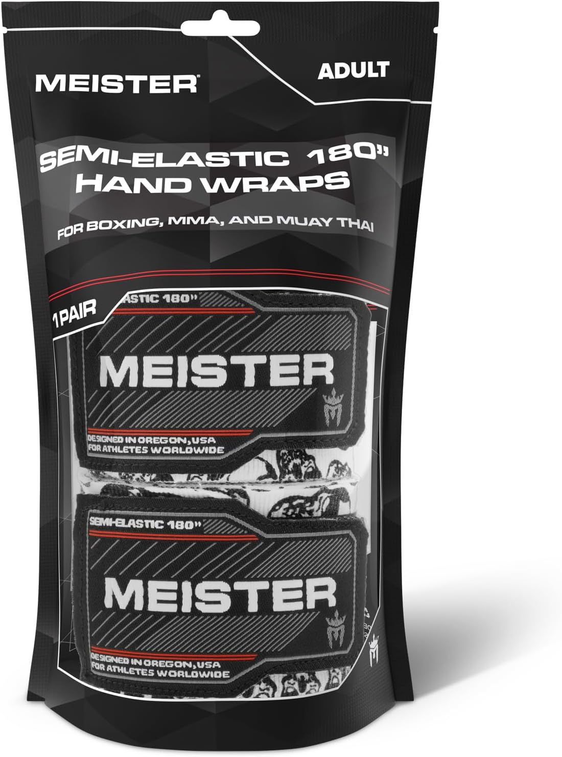Meister Adult 180″ Hand Wraps are full-length and ideal for MMA, Boxing, May Thai and other combat sports. These wraps are ideally designed to allow you to wrap a full 180″ of wrist support, hand support and knuckle protection without adding too much bulk under your gloves. Constructed from a high quality cotton and spandex blend, Meister wraps also provide ideal comfortable support, allowing you to wrap to your desired tightness. Featuring an oversized hook & loop strap and strong thumb loop, these wraps will stay snug and secure all workout long. There is a reason we have sold hundreds of thousands of our wraps – you get maximum value with Meister and striking original designs. Buy with confidence, Meister stands 100% behind every pair