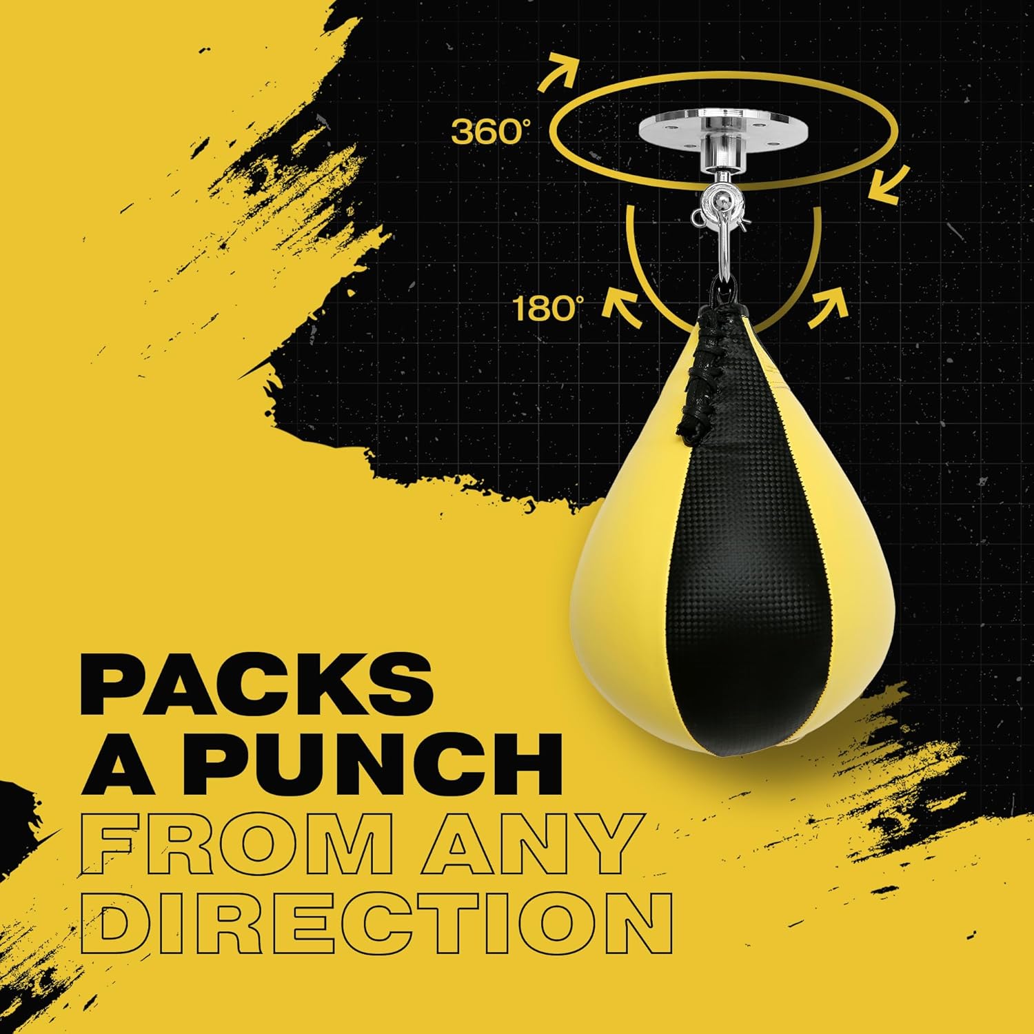SPEED BAG SWIVEL – The swivel mechanism provides fluid and dynamic movement, allowing for an authentic training experience that hones your reflexes and timing to perfection.