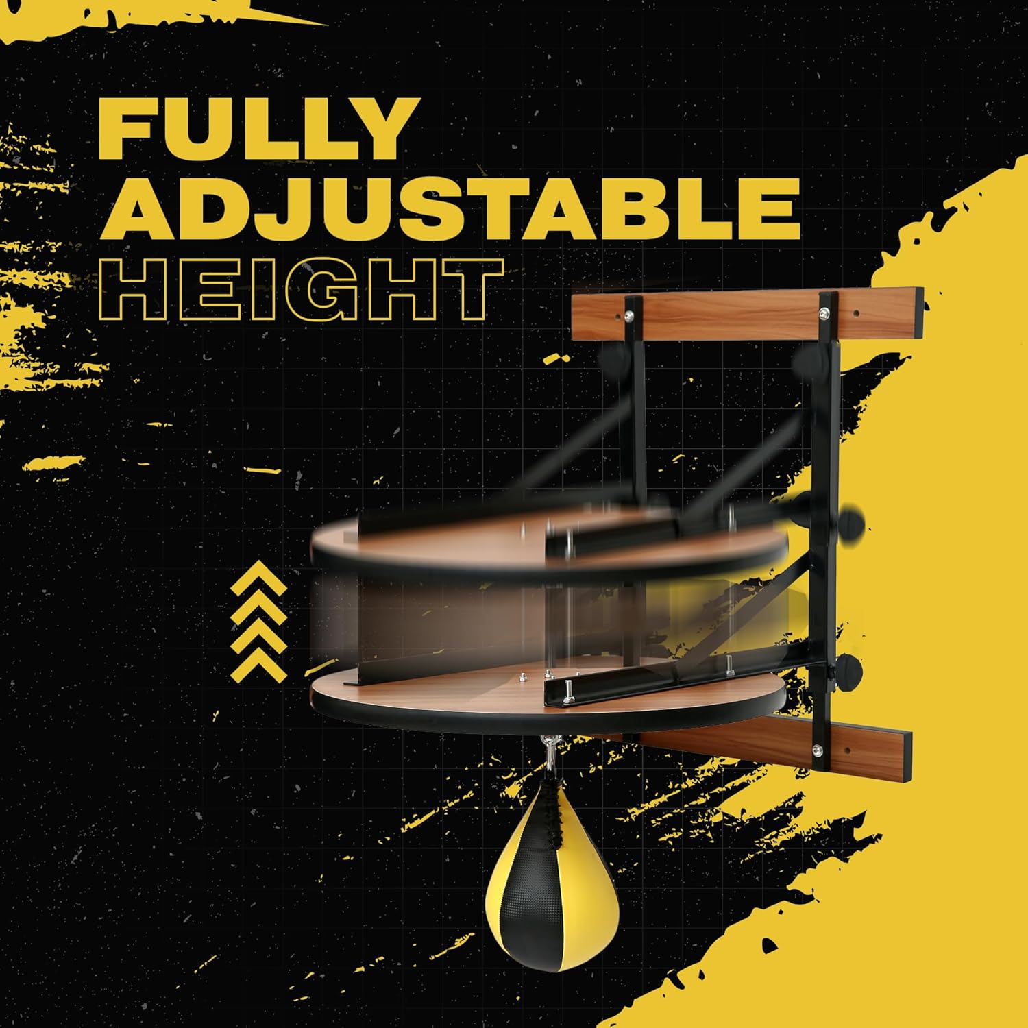 Houseables Boxing Speed Bag Platform Kit, Speed Bag Mount with Speed Punching Bag, Adjustable Height Wood Platform, Black Speedbag Ball, Swivel Speed Bags for Boxing Training, Speed Bag Wall Mount Set