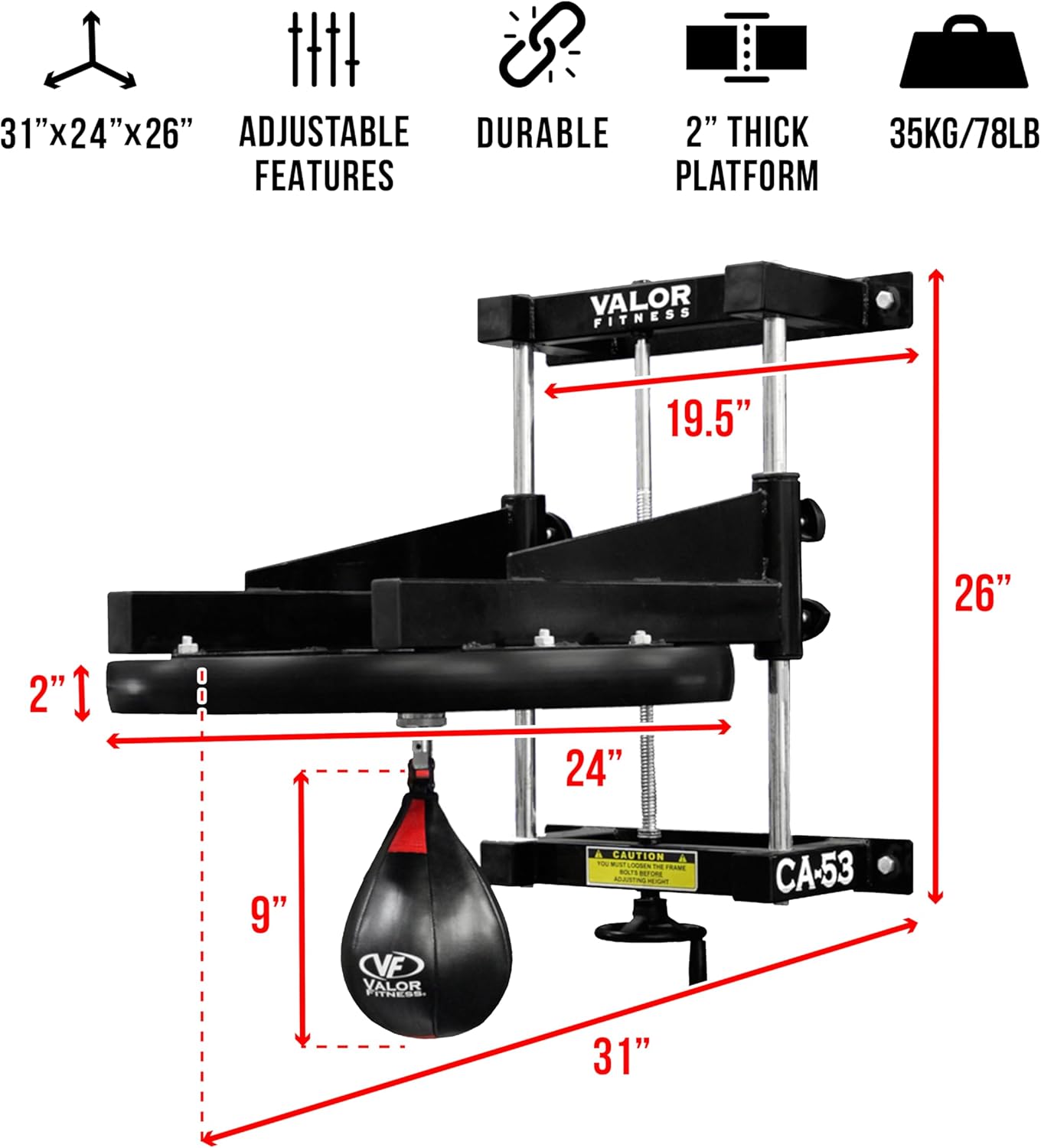 ADDITIONAL- Speed bag included. Valor Fitness Speed Bags are built to fit our products. If using another bag, the CA-53 should accommodate most S/M speed bags. Partially assembled for your convenience.
