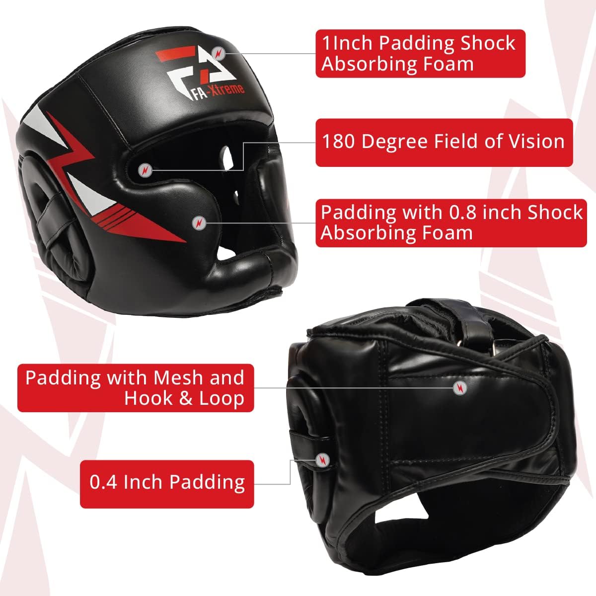 QUALITY MAKE: This boxing head guard is made from the highest quality polyurethane leather and contoured foam at our facility in Pakistan. When it comes to your safety in training or in the ring you can’t afford to compromise, so come to FA-Xtreme and we’ll protect your head properly