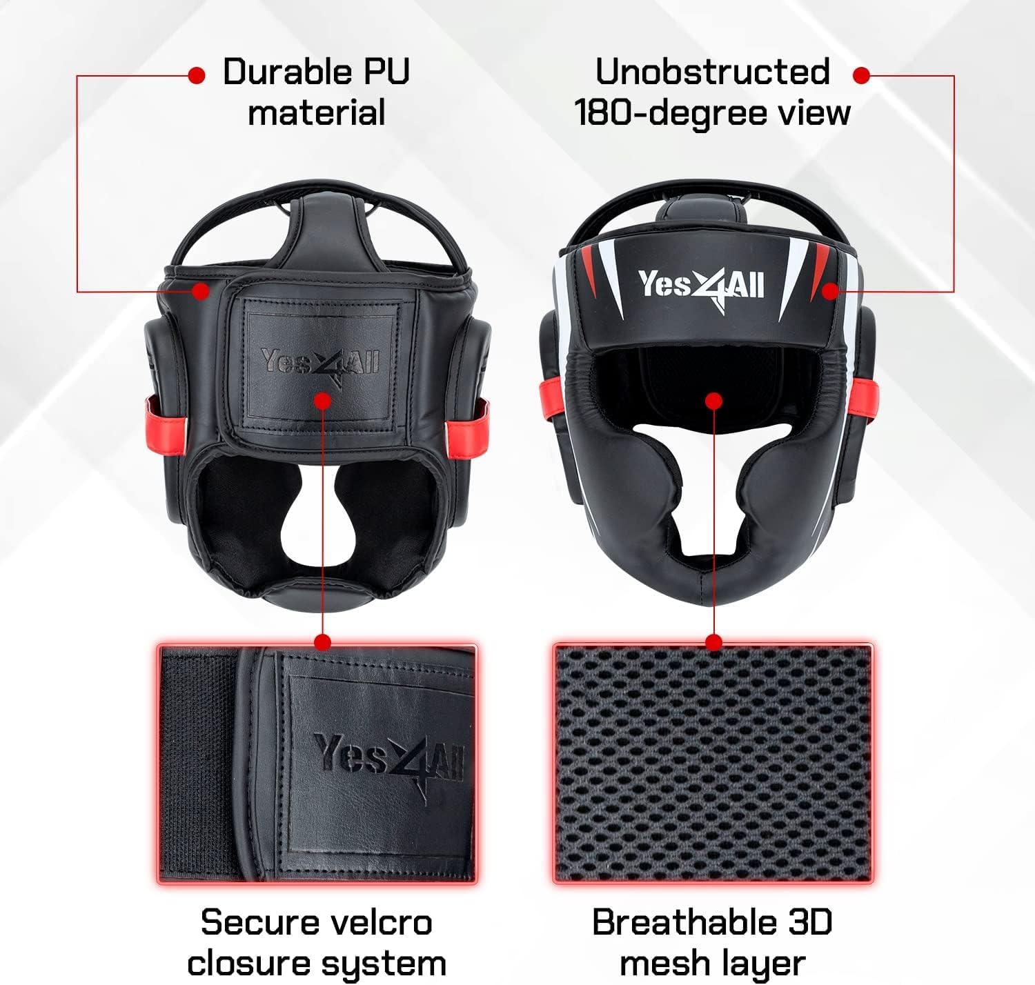 OPTIMIZED DESIGN: 180 degree view for better situational awareness and quicker reaction times, adjustable and tailored shape for a secure fit and comfort, ideal boxing and kickboxing headgear for full face protection