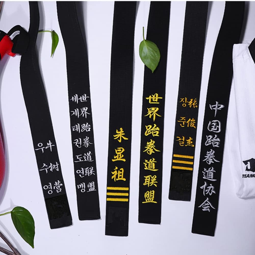 Introducing our custom martial arts belt, crafted for Aikido, martial arts, and Taekwondo practitioners. This 1.96 inch wide belt is made from 75% cotton, providing superior durability and comfort during training. The adjustable fastening ensures a secure fit, while the embroidered custom text allows you to showcase your individuality. Whether you practice karate, judo, or any other form of martial arts, this belt is an essential accessory that holds your uniform together and symbolizes your progress and dedication.Available in multiple sizes to fit waists up to 50 inches. Simply provide the text you want embroidered, up to 3 lines, and we will translate it into Chinese, Korean or Japanese for free. Hand wash only. Belt length is approximately 11.8 inches from waist to end.