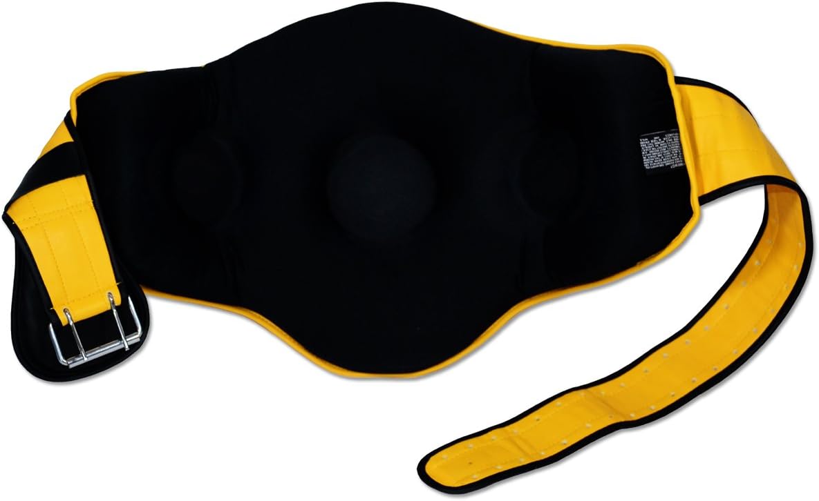 Mutiple layers of shock absorbing foam padding with Dome Air technology placed on 3 stress points. No Hook n Loop strap closure on the back, this belly pad comes with heavy duty metal buckle and triple layer strap for extra secure fit.