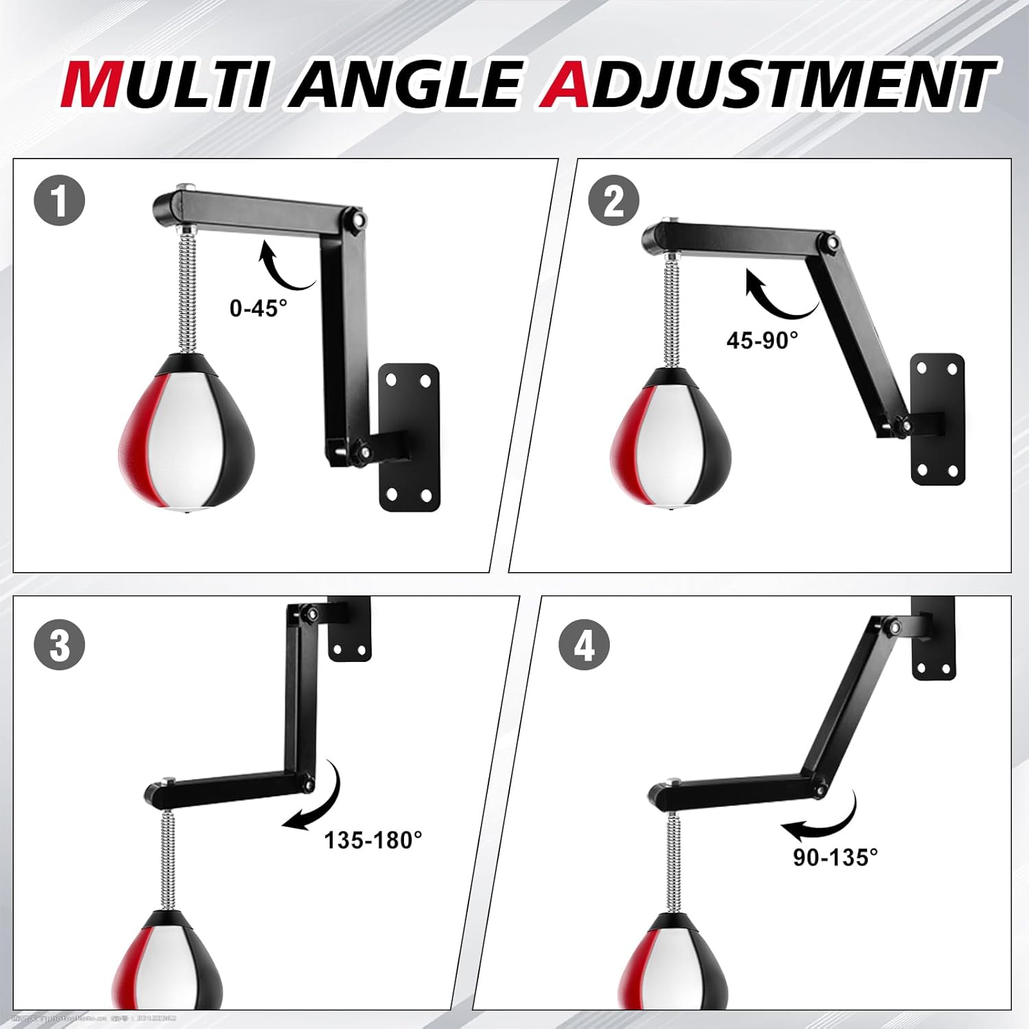 Adjustable Height: Adjustable in different heights. This foldable boxing speed bag is ideal for adults, kids, and teens. You can adjust the height to fit your need. This wall mount punching bag does not take up precious floor space, save your space.