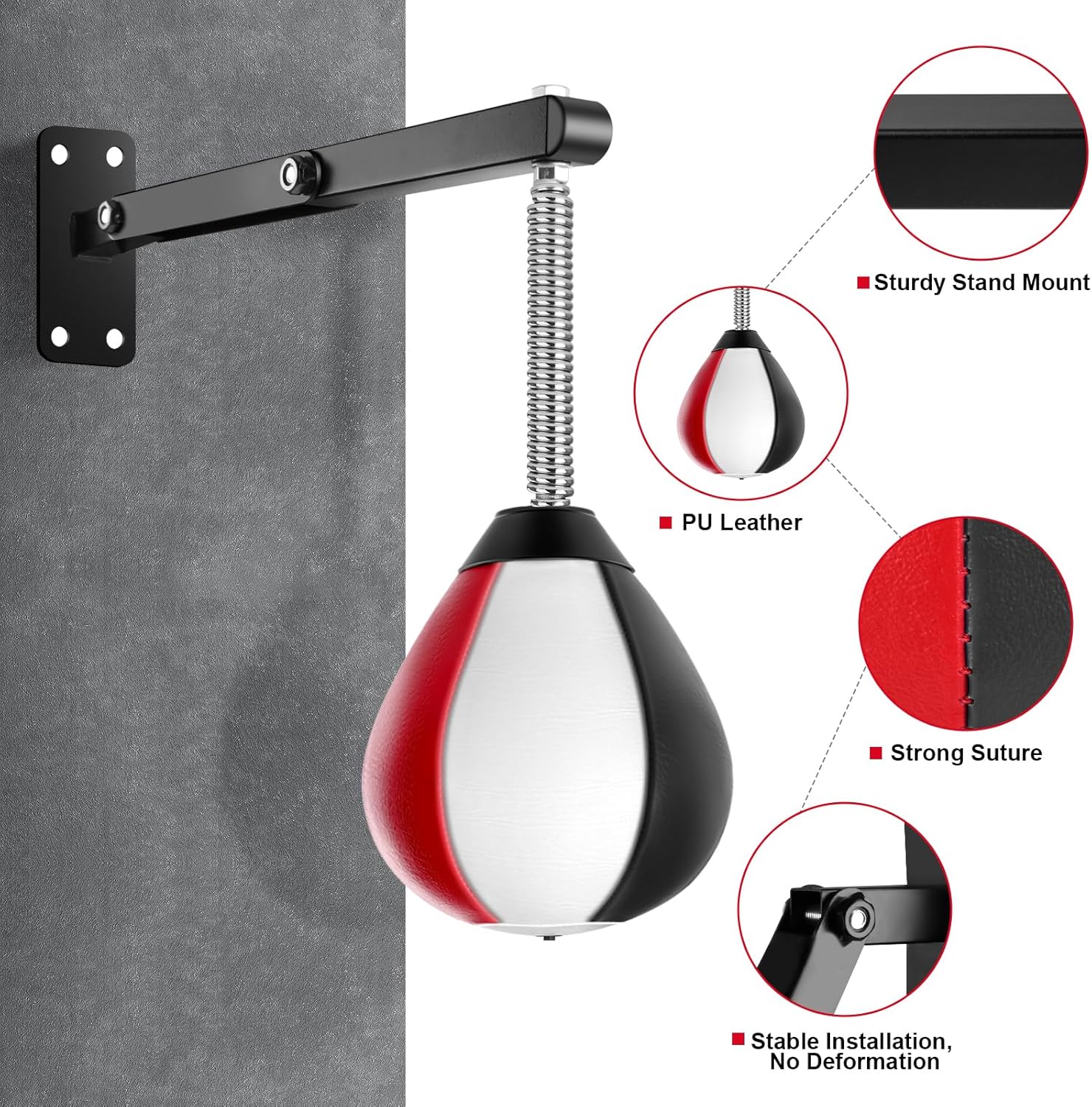 High Quality Speed Bag: This PU leather boxing bag is wear-resistant and soft to withstand intense punching. come with durable boxing wall mount, and the highly resilient springs can return to its original position quickly after each hit. Give you a comfortable boxing experience.