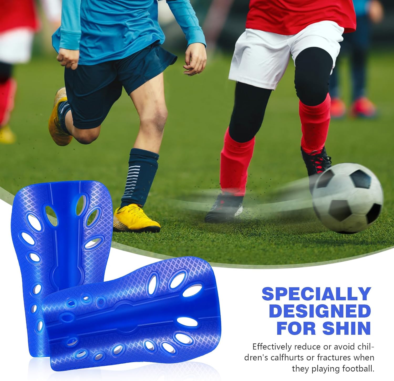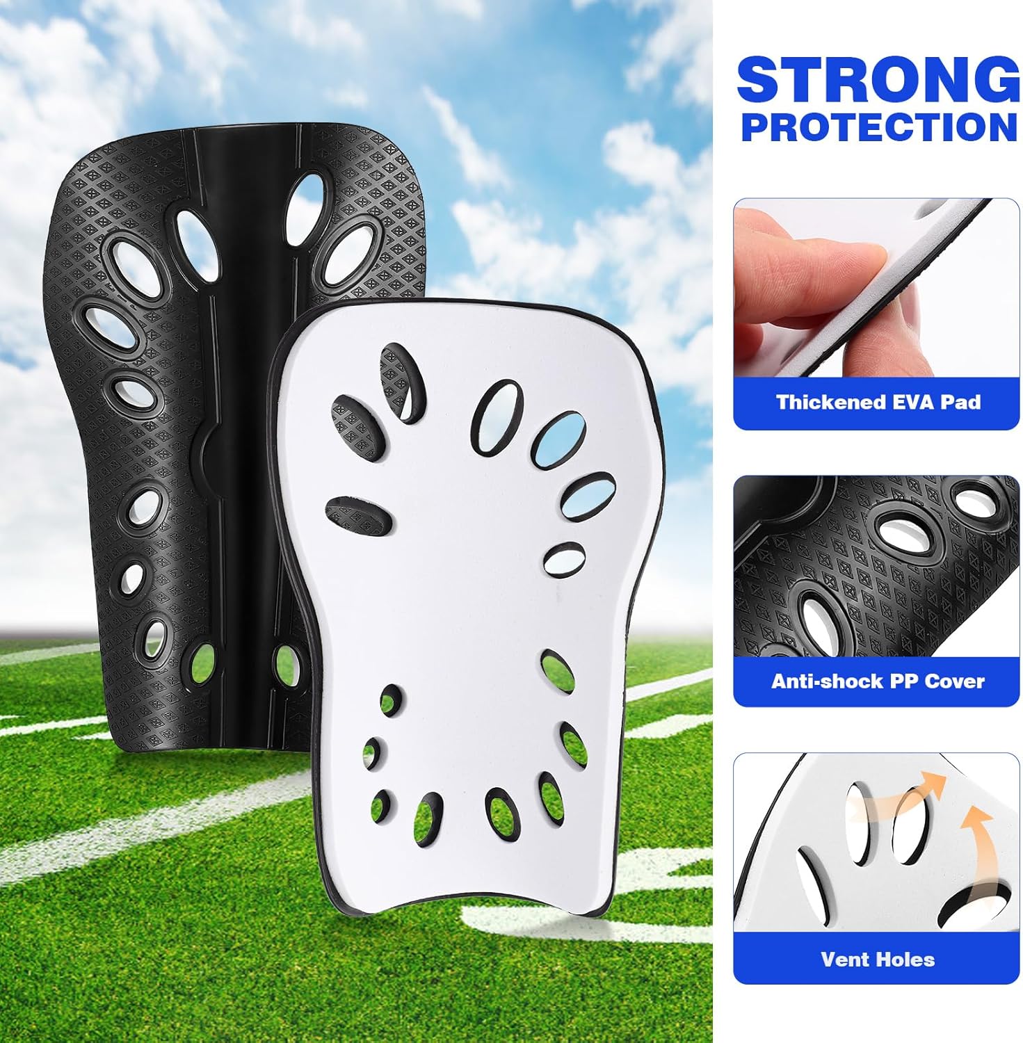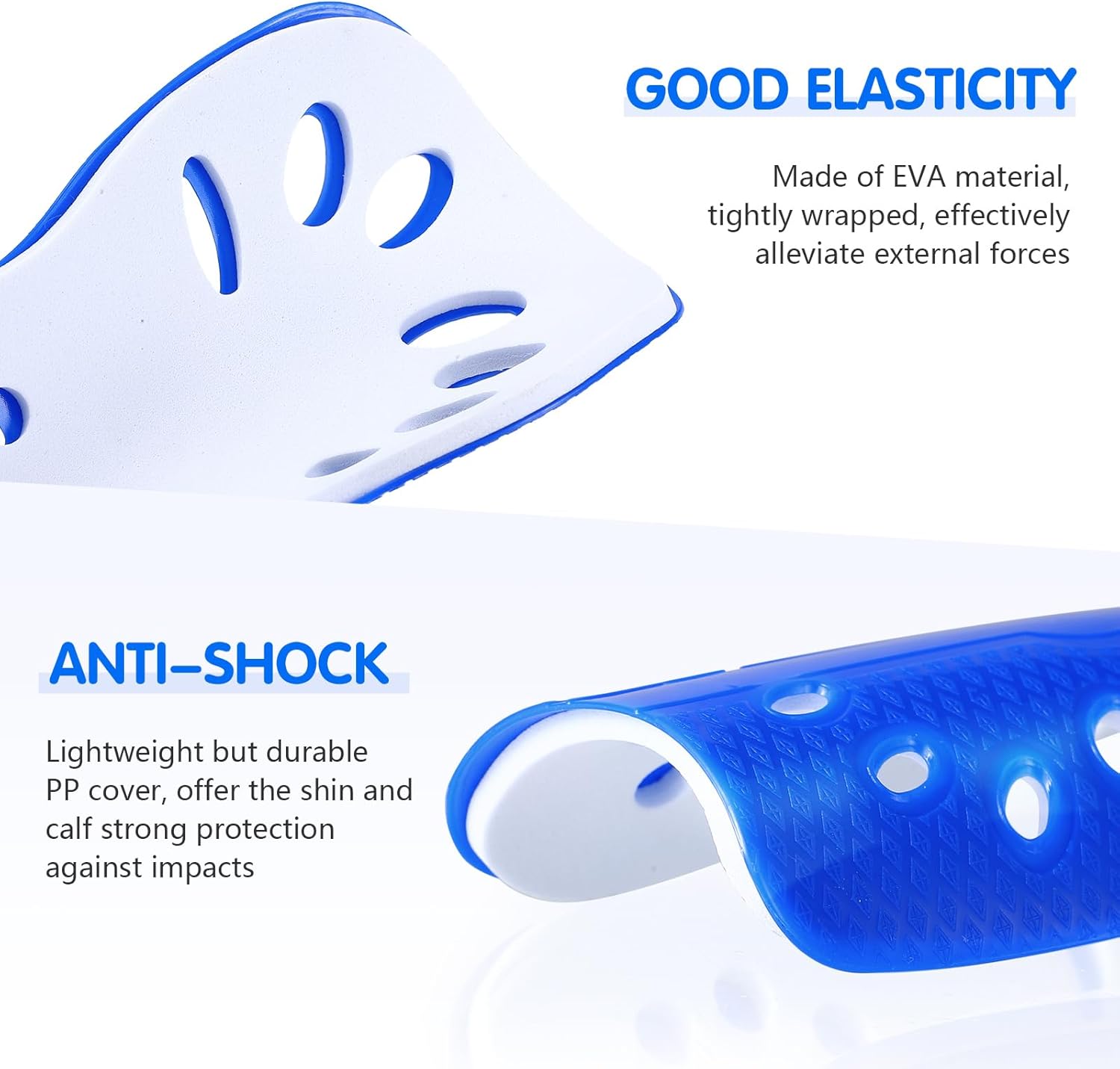 The shell, foam padded backing and multiple breather holes design give these shin guards soccer light weight, high breathability, great fitting your leg shape and super comfort.