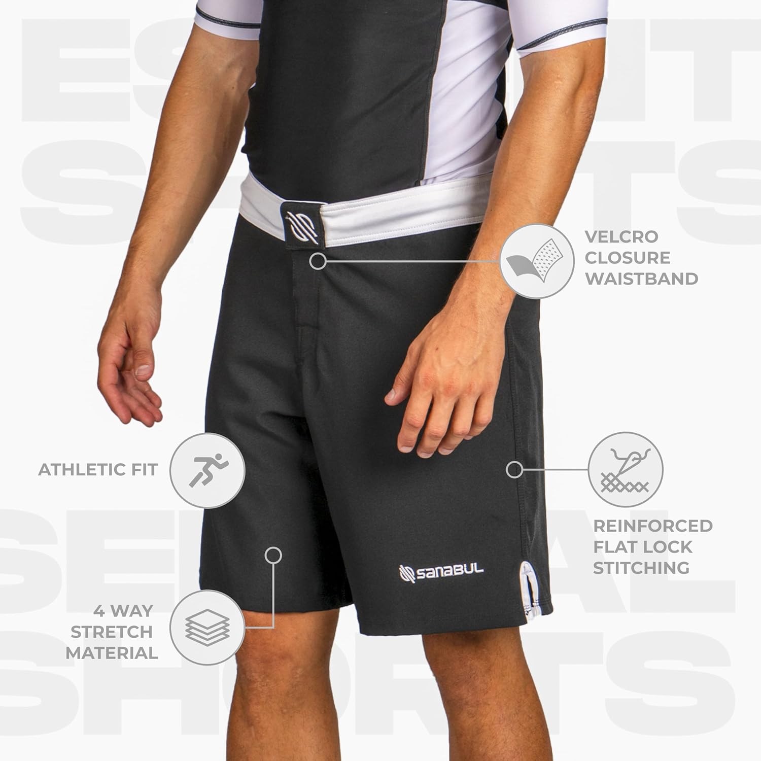 Sanabul Essential MMA Shorts | Men BJJ Shorts | Boxing Fight Grappling Shorts | Jiu Jitsu, No Gi, Kick Boxing Shorts for Men
