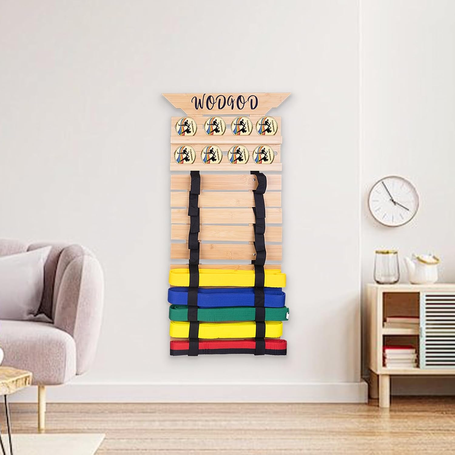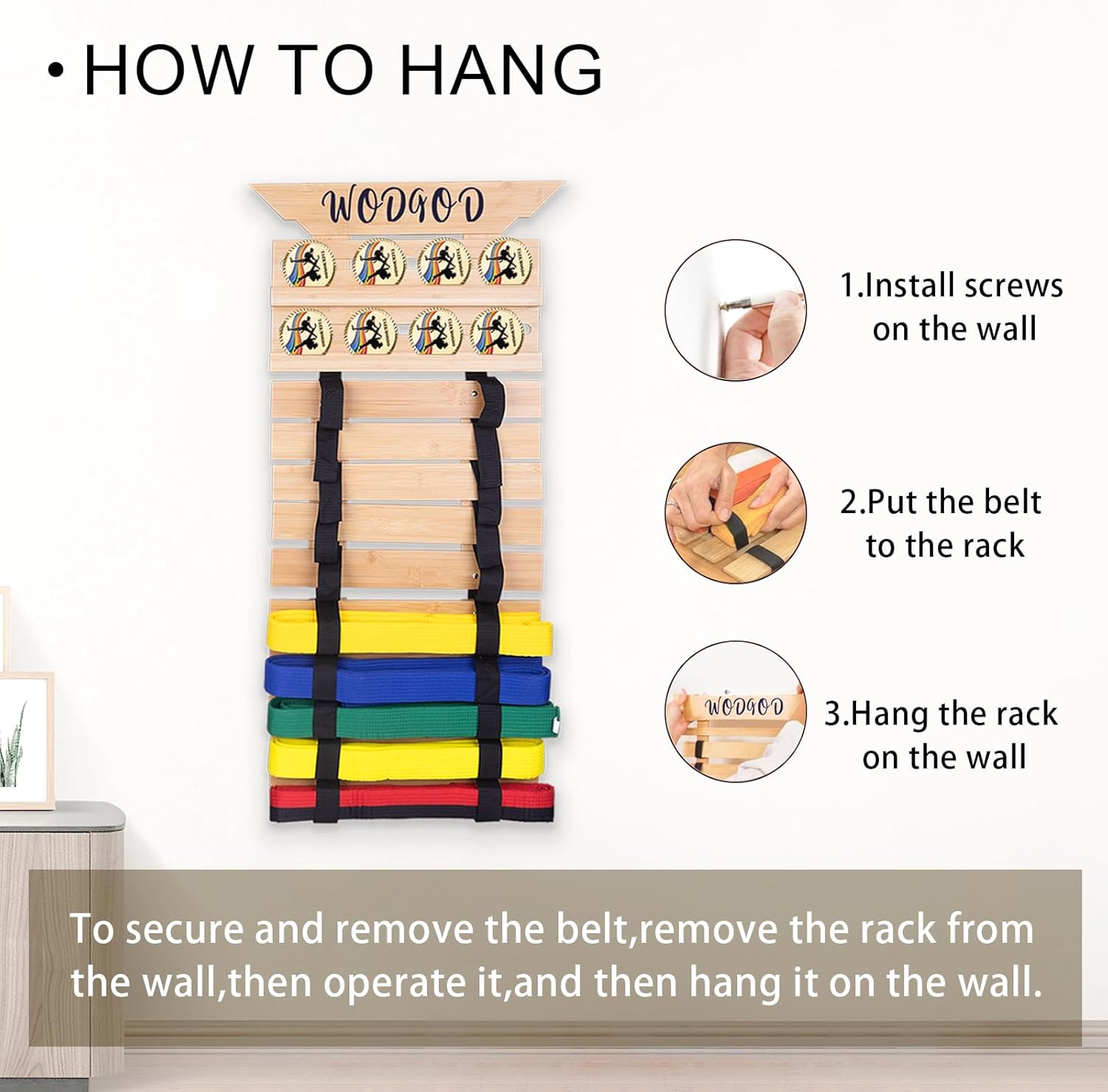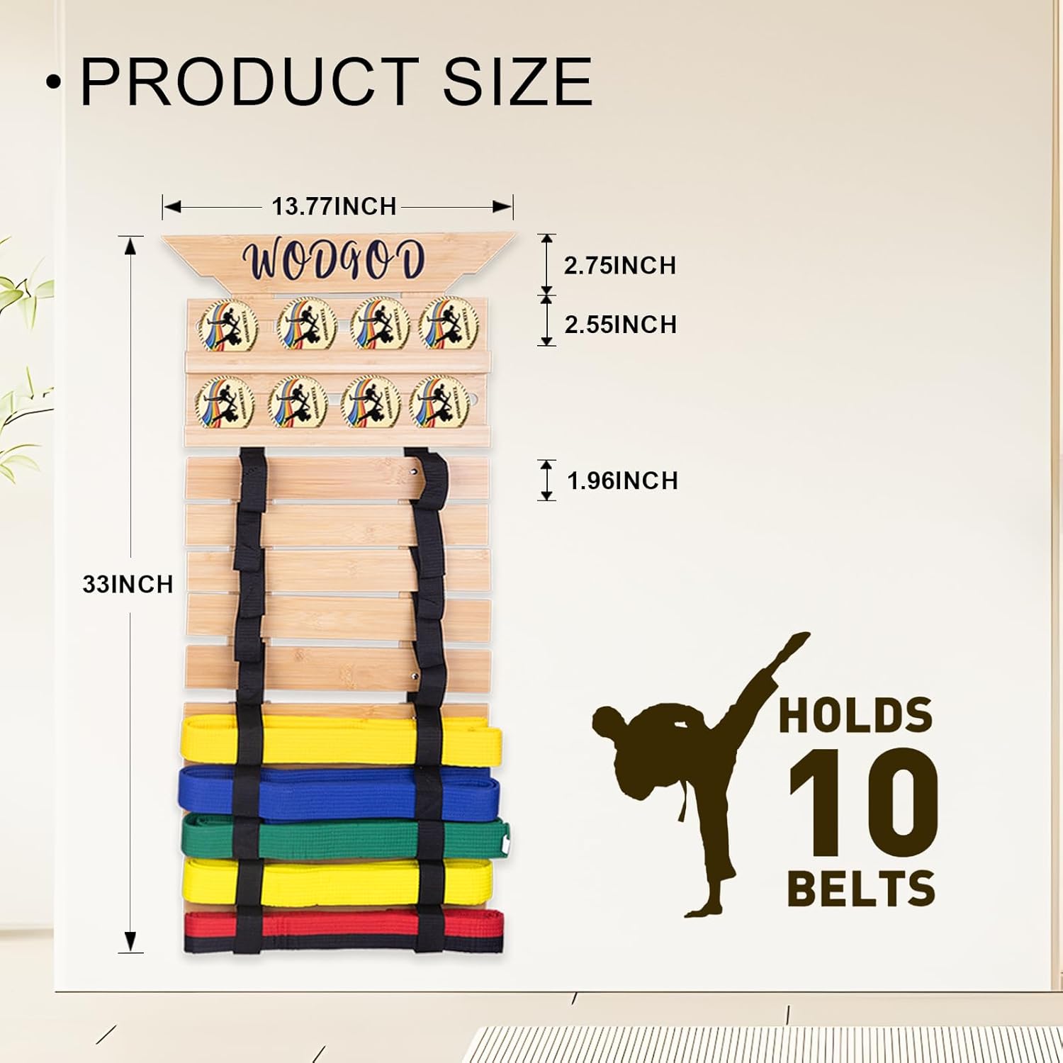 【HOLD 10 BELTS】HOLD 10 BELTS: Hold up to 10 belts, suitable for martial arts learners and enthusiasts. The slat fits different kinds belts, great way to display martial arts, karate, taekwondo, ninja, jujitsu, ninjutsu, Kung Fu, TKD, BJJ and other martial art form belts.
