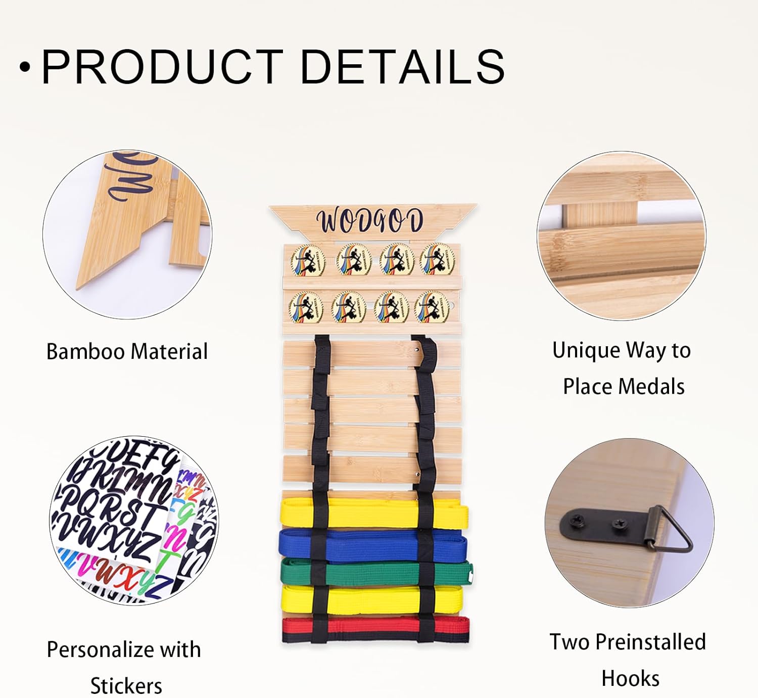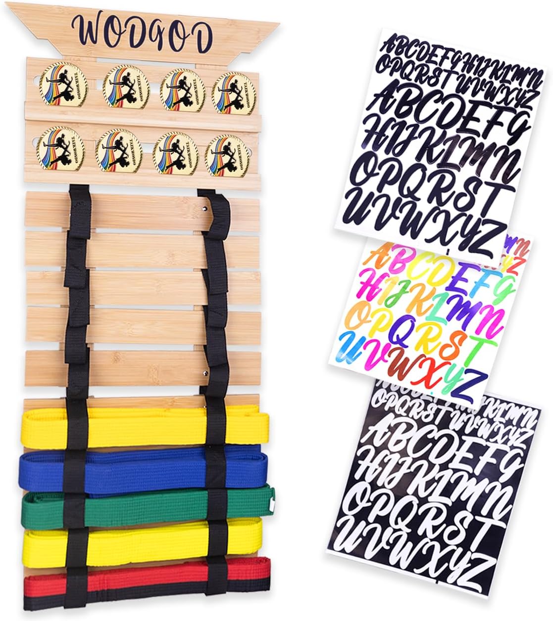 【PERSONALIZED STICKERS】Comes with a sufficient number of stickers, including 3 different colors of stickers to put your name on the belt rack to become a personalized display rack and show off your glory.