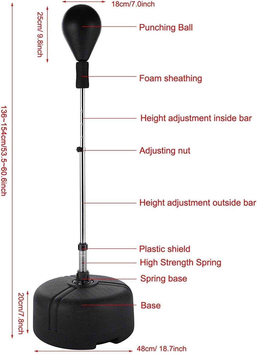 【Adjustable Height Stand For Your Convenience】Our free standing boxing bag height adjustable range is 136~154cm/53.5~60.6inch, to suit personal preferences and face people of different heights, even if you are a child, it can perfectly cooperate with you to complete boxing training. Our punching ball is perfect for teens 13 and up, youth, adults, men and women.
