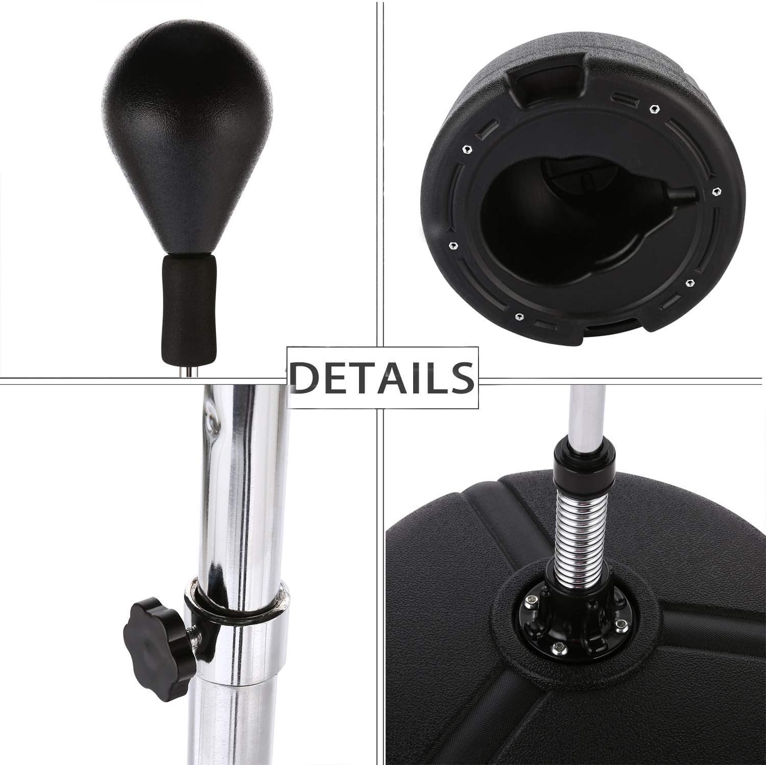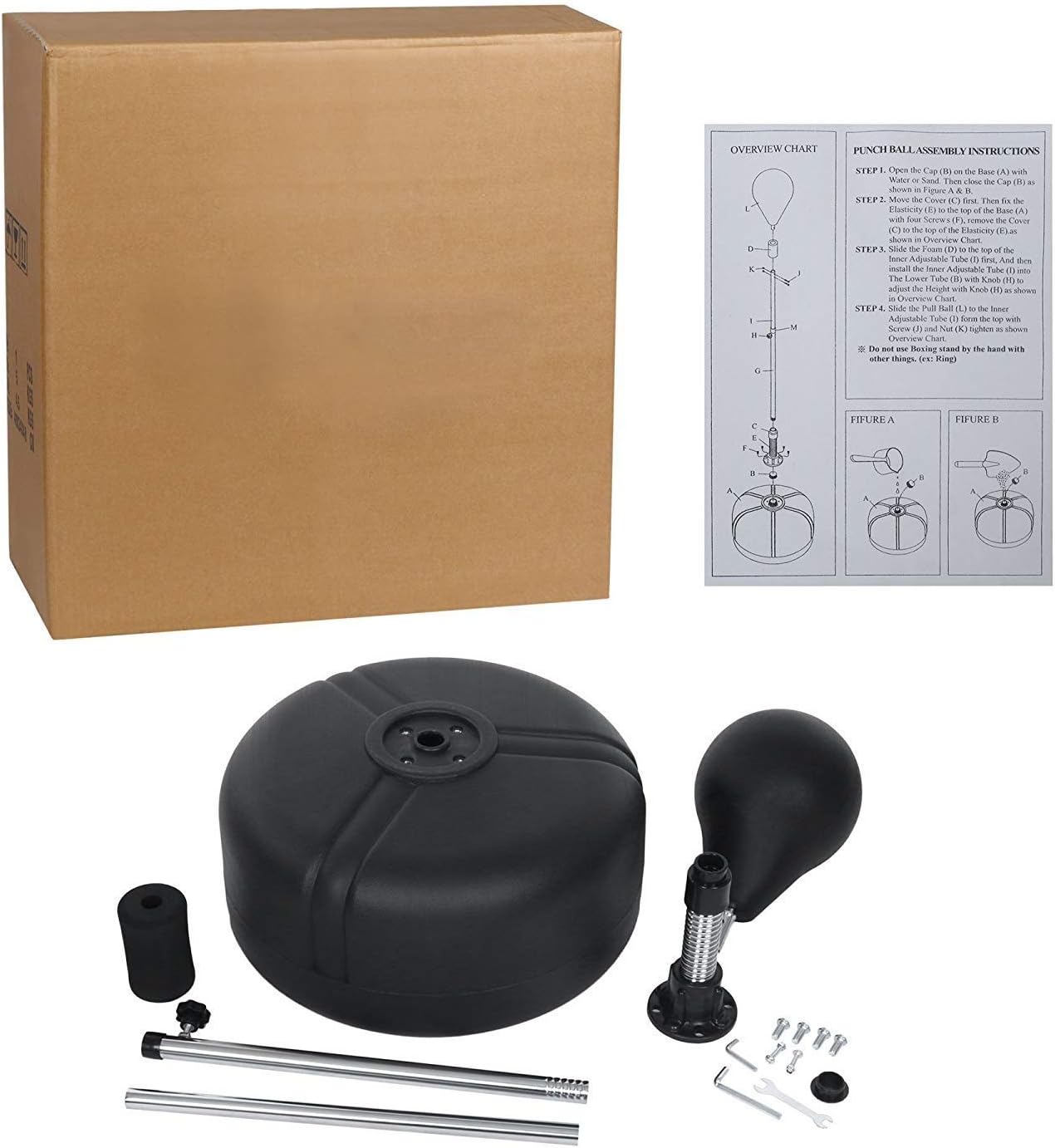 【Quality Upgraded Spring And Large Capacity Base】Our freestanding boxing ball stand uses more strong, durable springs than others. This allows the spring mounted punching bag to bounce back into position every time after every hit. Note: Be prepared to face the fast rebound of the boxing bag. The punching bag come with a highly durable stand and a heavy-duty base, held securely in place by filling it with 30kg water or sand.