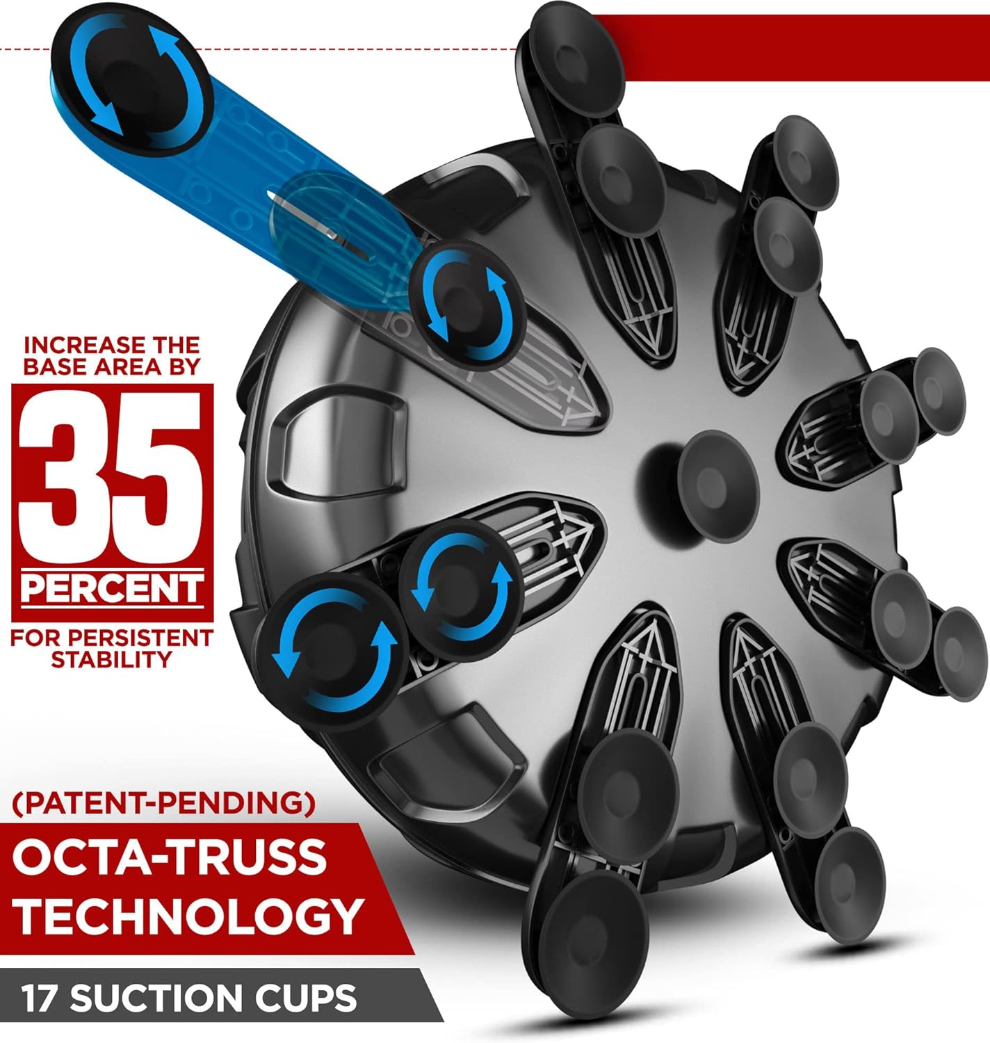 The Extendable Legs Along With the 17 Suction Cups Help The Base To Stick To Any Smooth Surface And Keep The Bag Upright