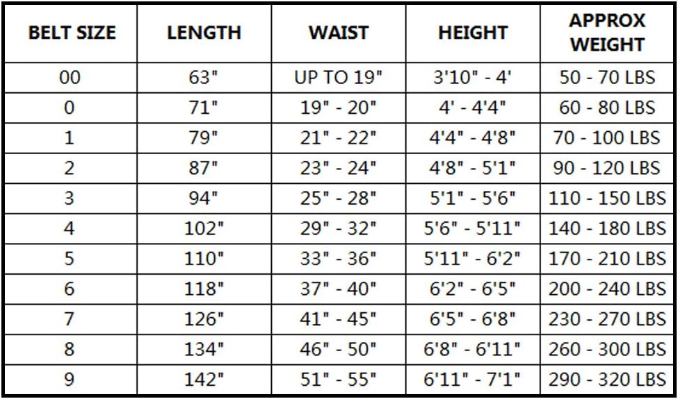 Belt Colors: White, Black, Red, Orange, Yellow, Blue, Green, Purple, Brown, Gold
