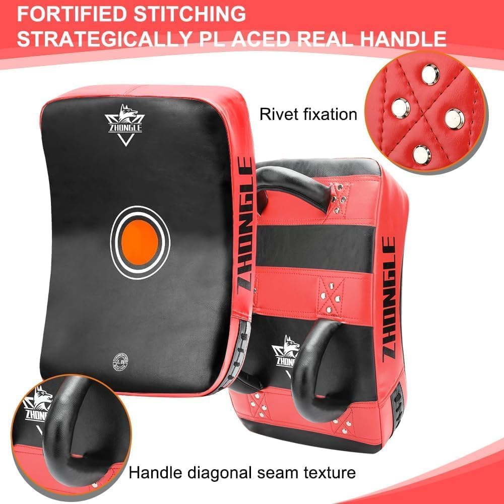 【 SUPERIOR GRIP DESIGN 】 – The pad features padded lower straps made of SpongEX and PU leather, offering a secure and stable grip. The top handle, reinforced with PVC, ensures durability and reliability during rigorous training sessions, enhancing your overall training experience.