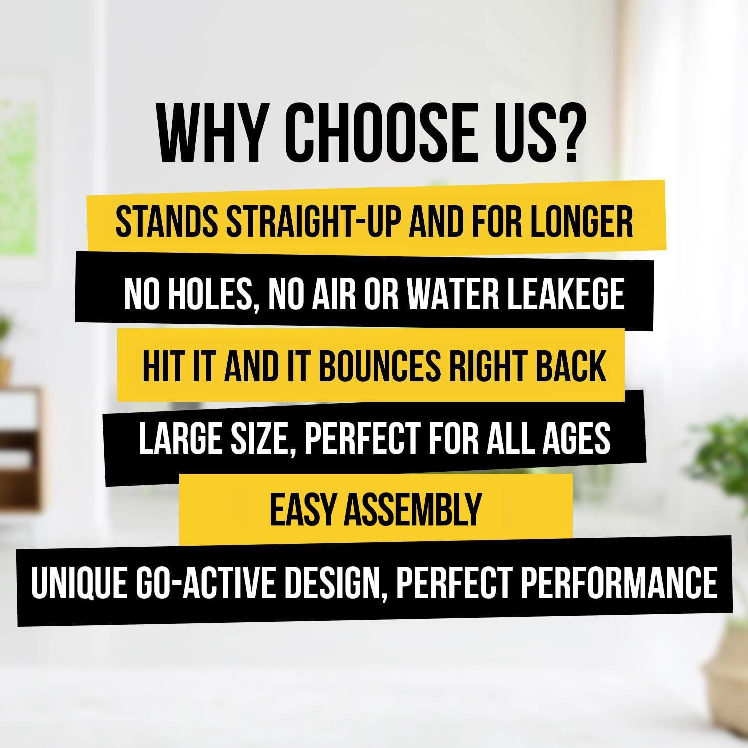 No Worry – No Holes – Easy To Use &Amp; Will Not Tear – Simply Fill The Base With Water (No, It Never Leaks) Or Sand, If You Prefer And Inflate The Top Part Using Mouth Or Pump And You’re Ready To Go. When Not In Use, It Can Be Emptied And Folded Down Ready To Play Another Time