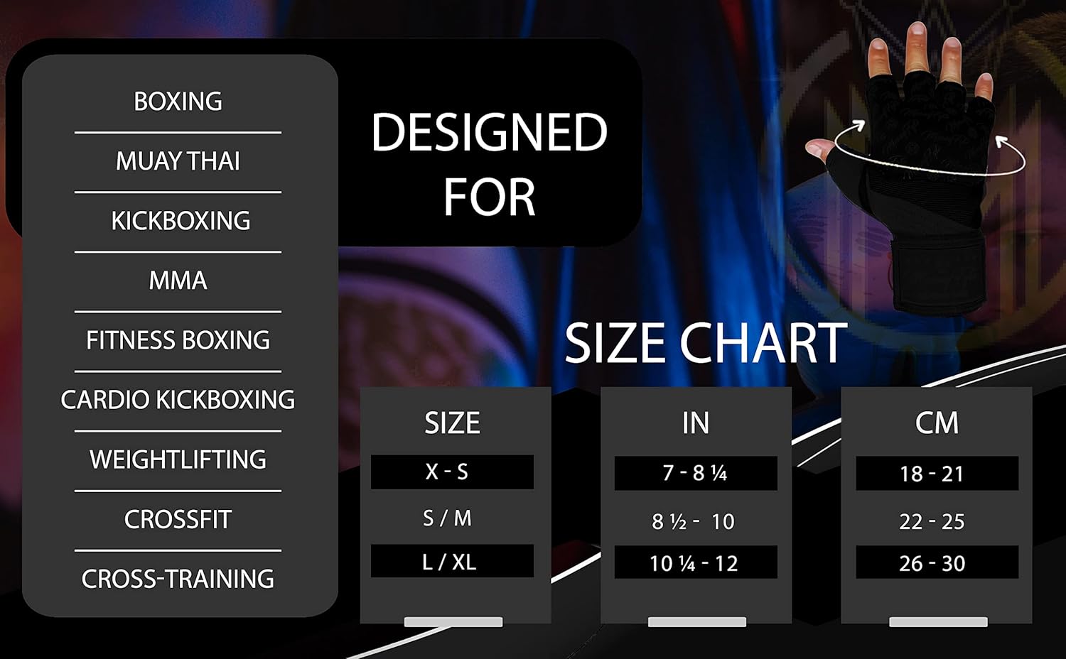 Designed For Boxing, Muay Thai, Kickboxing, MMA (Mixed Martial Arts), Fitness Boxing, Cardio Kickboxing, Weightlifting, CrossFit, and Cross-Training