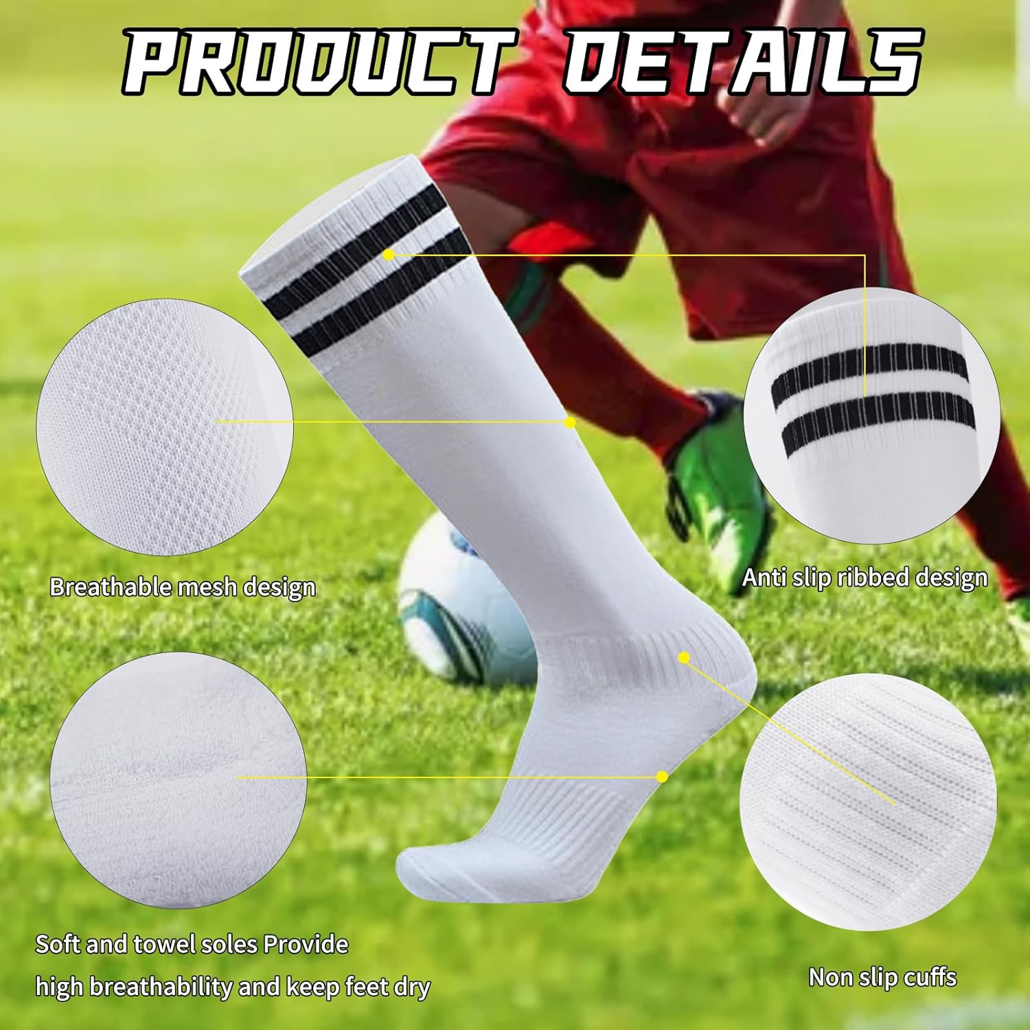【Shin guards with socks】—–These shin guards well match with polyester soccer socks. Made from 95%Polyester and 5% spandex, Soft and towel soles Provide high breathability and keep feet dry.