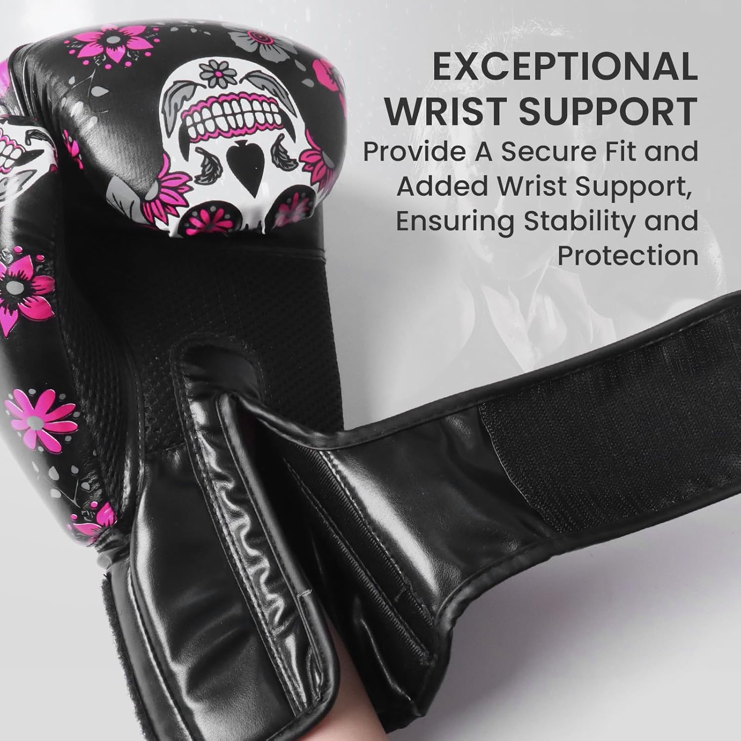 Different Sizes Boxing Gloves: 6oz,8oz,10oz ,12 oz 14oz .For further size guidance please look at the size chart in the pictures;Friendly on every type of skin in Women boxing gloves sizes;