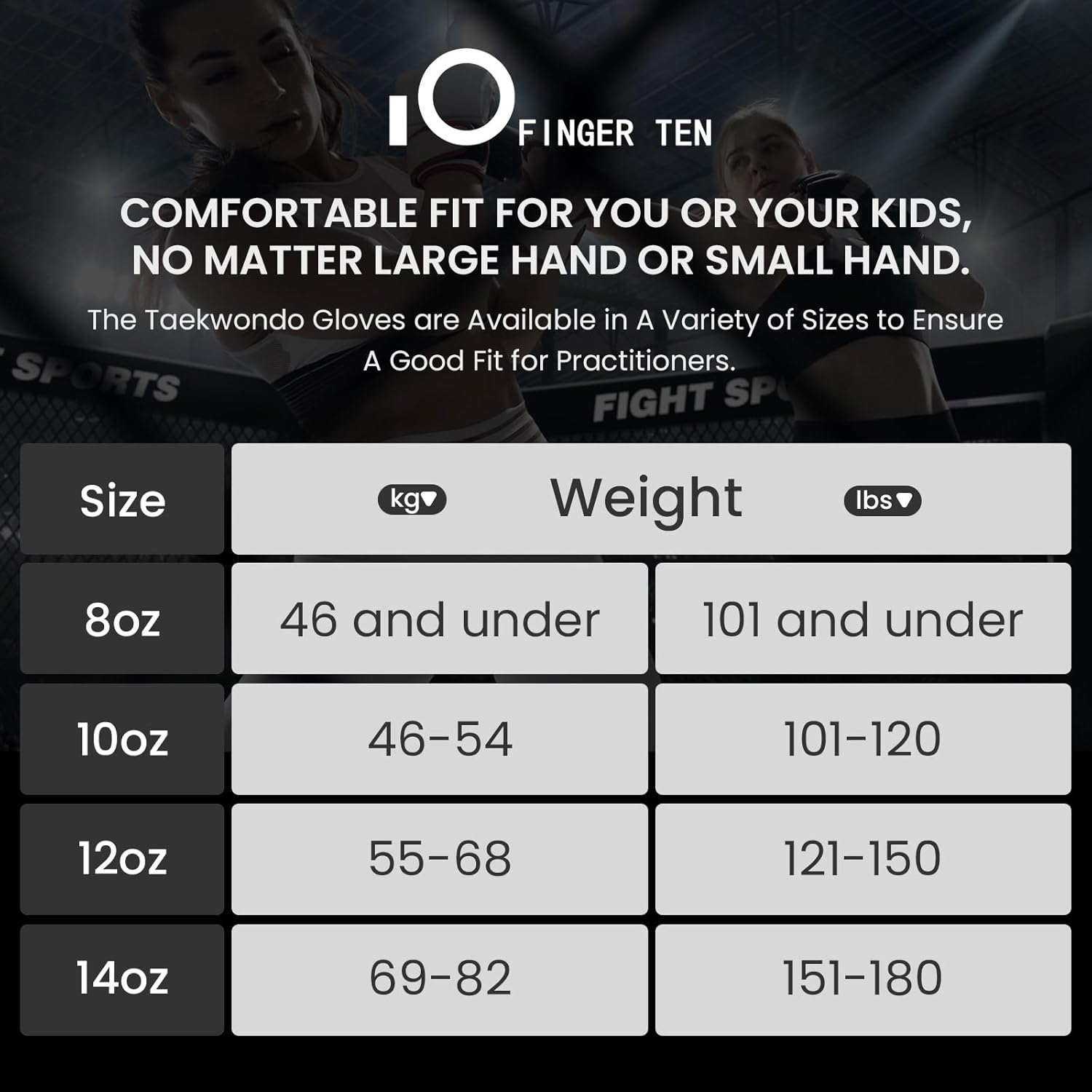 Multi-Purpose: Finger Ten Boxing Gloves are great to use with other boxing equipment. Boxing, Kickboxing, MMA, Muay Thai, Taekwondo, Judo, Karate, Self Defense,Sparring Set, Boxing Set, Heavy Bag, Boxing Bag, Punching Bag, Boxing hand wraps,Boxing punch mitts and pads;