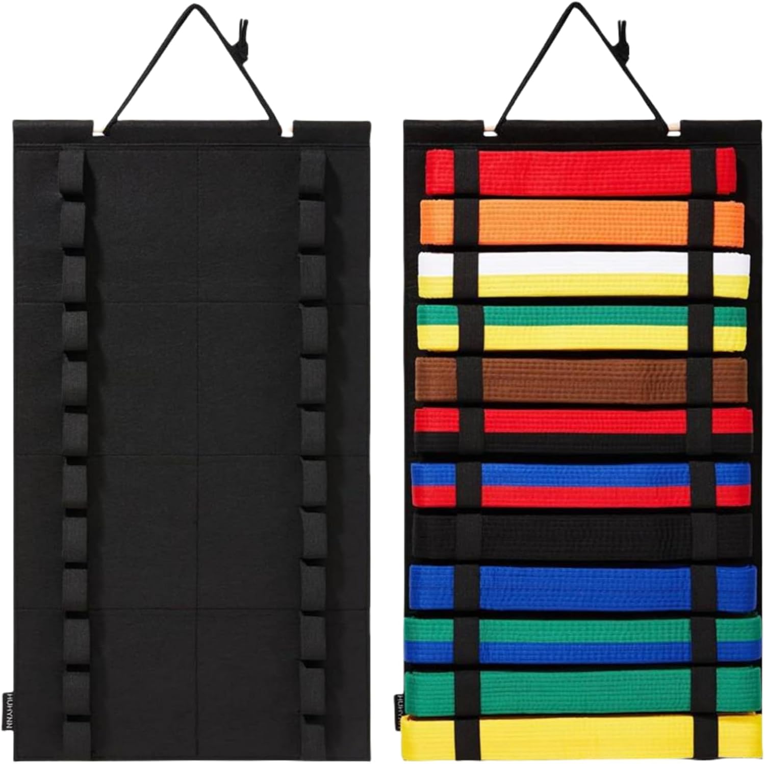 REDUCE STORAGE SPACE: The belts can be placed orderly on our belt organizer to avoid loss and dirtiness. Hanging on the wall makes the space cleaner and can also stimulate children’s motivation to continue training hard. It can also be folded and stored when not in use