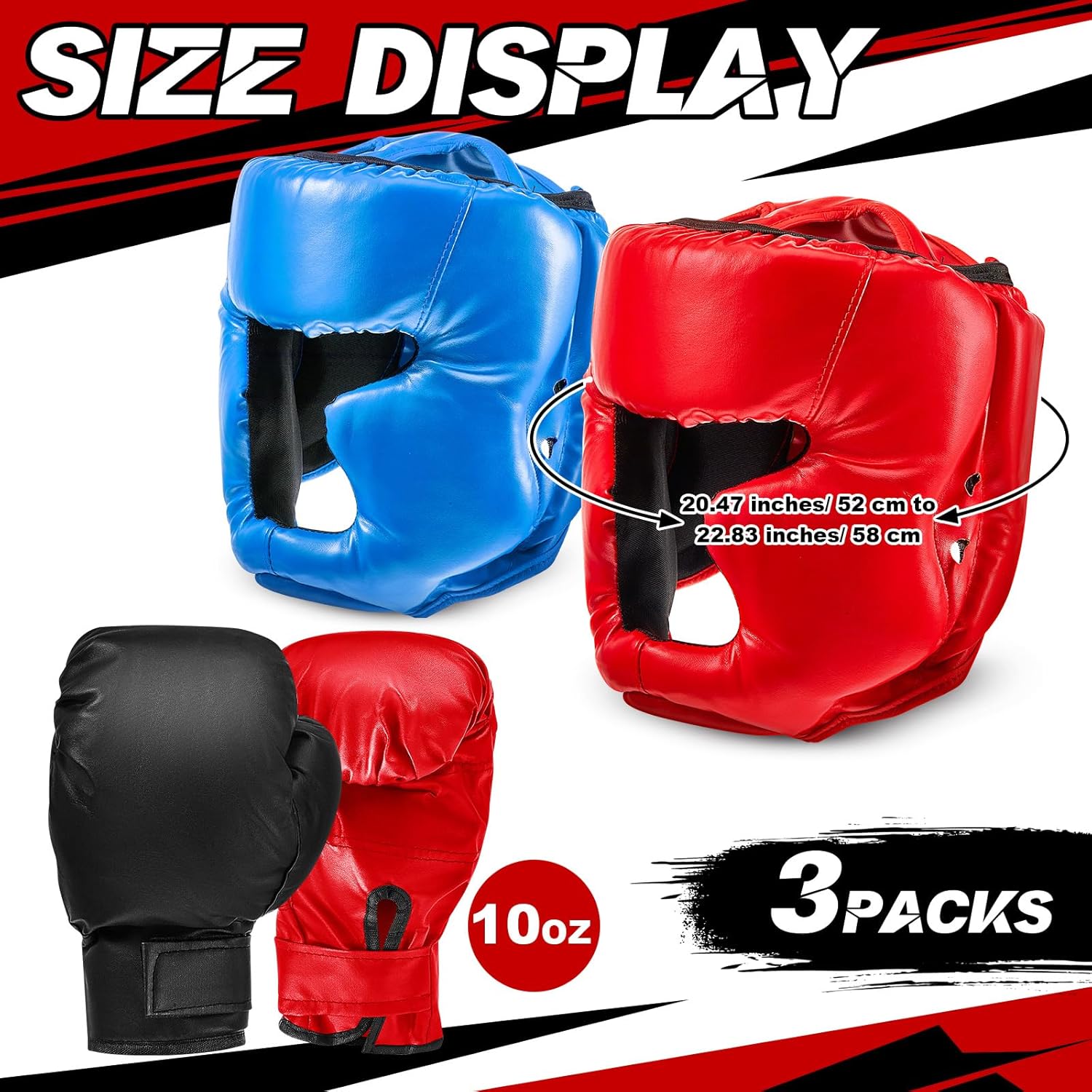 Size Information: designed to cater to various head sizes, the helmets have a head circumference ranging from 22.83 to 25.59 inches (58-65 cm), this ensures an ideal fit for most people, regardless of their head size; The gloves have a weight of approximately 10 oz, providing the ideal balance between protection and flexibility