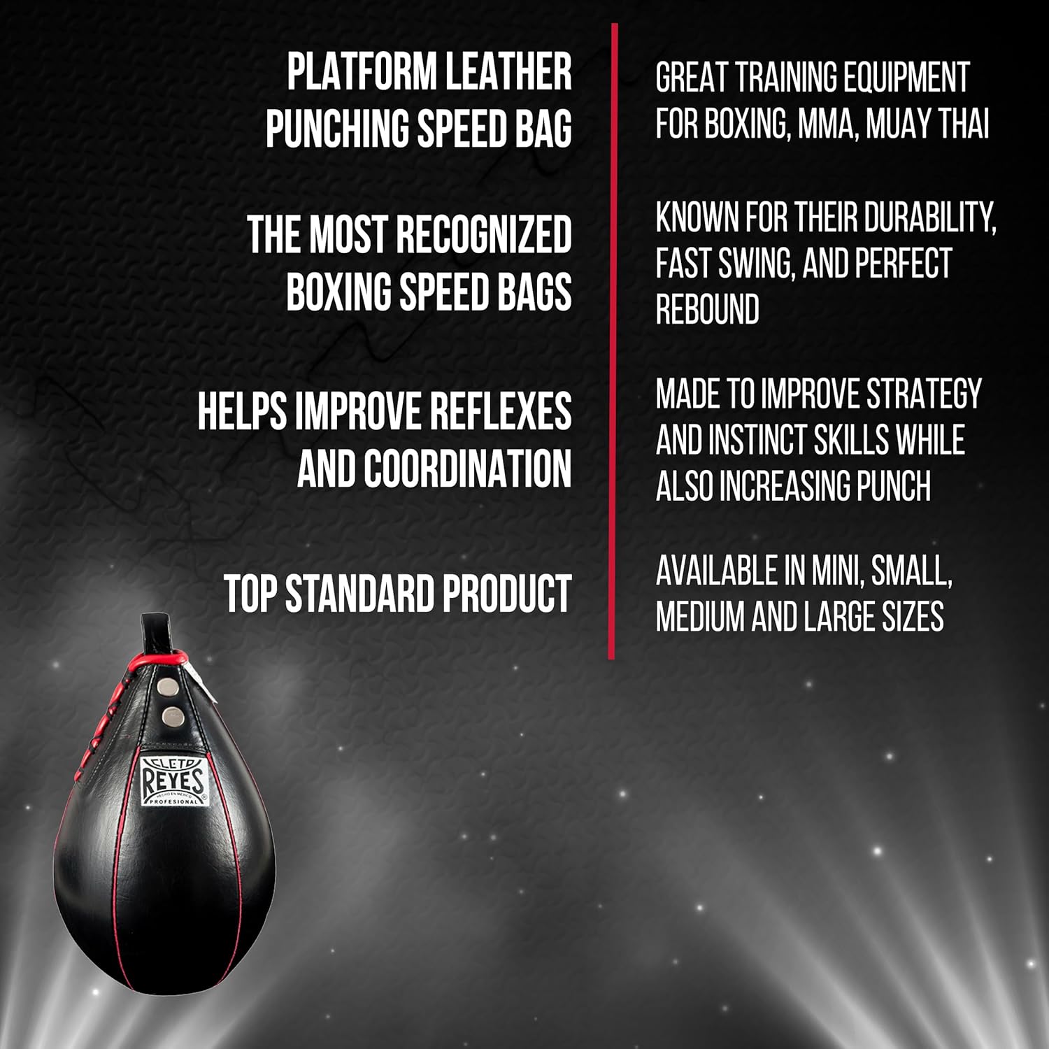 MAXIMIZE YOUR BOXING TRAINING – CLETO REYES speed bags for boxing, MMA, Muay Thai are designed for improved reflexes, coordination, and punch speed. Top-of-the-line quality boxing products you can rely on!