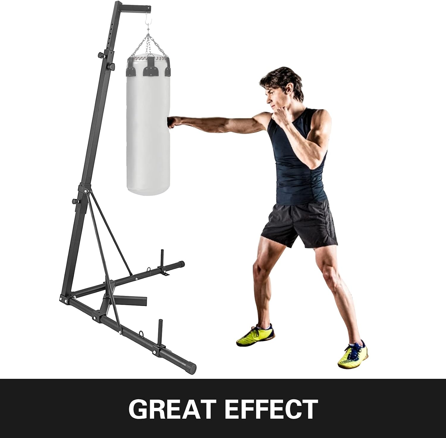 Durable & Foldable: Heavy bag stand is constructed of iron frame with powder coating, durable and sturdy, strong enough to bear 60kg/132lb weight heavy bag. Can be folded for easy move and storage. Easy to put together with few pieces.