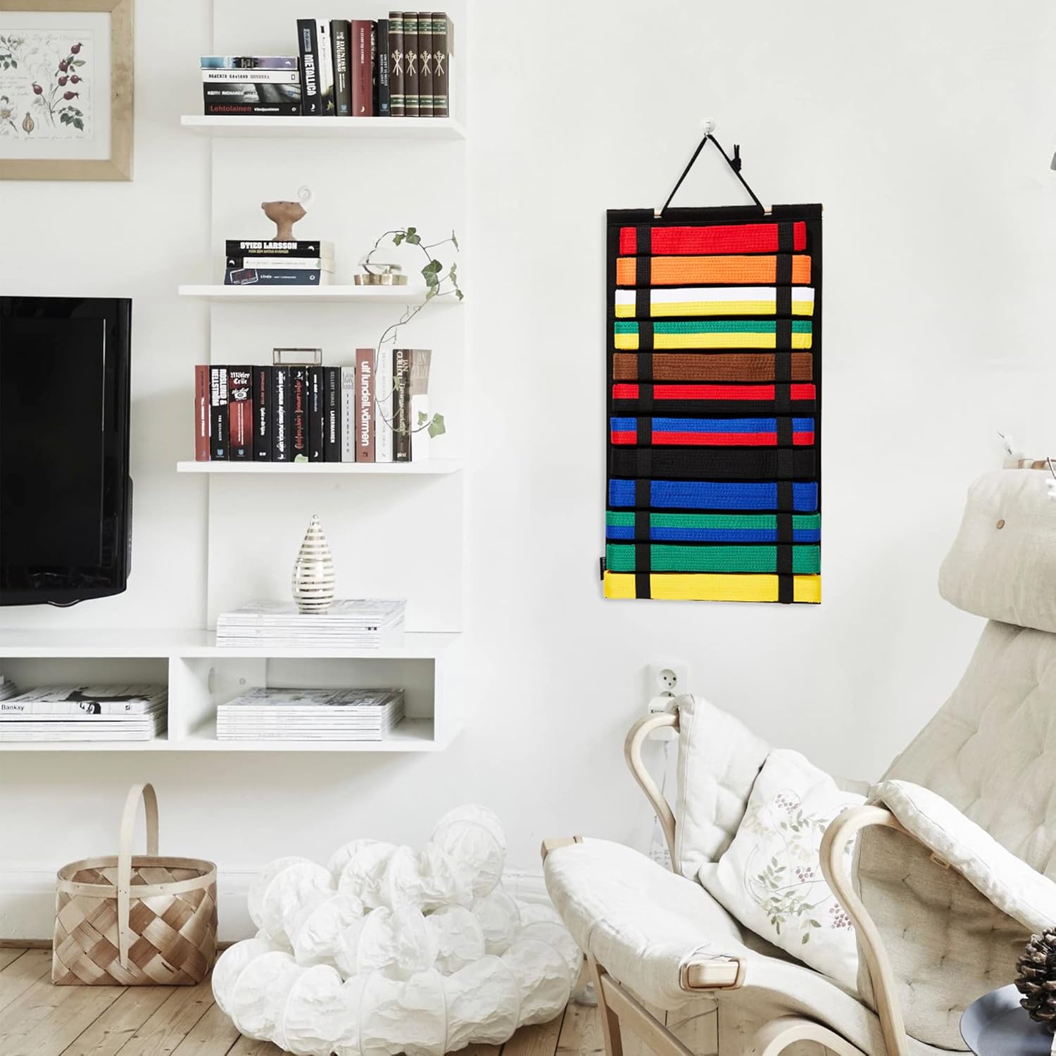 HUHYNN Martial Arts Belts Organizer, Hanging Karate Belt Display Holds 12 Karate Belts for Martial Arts Learners