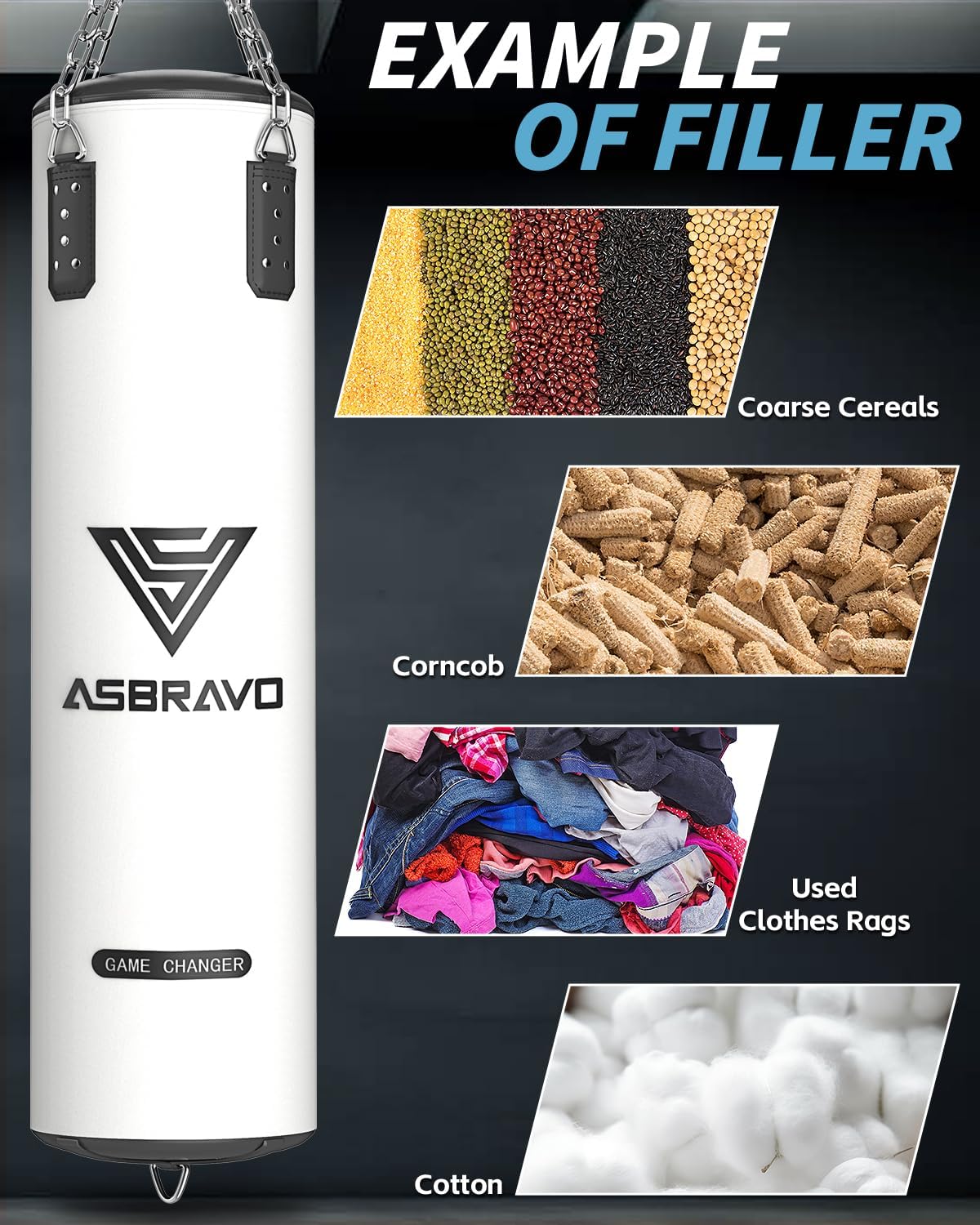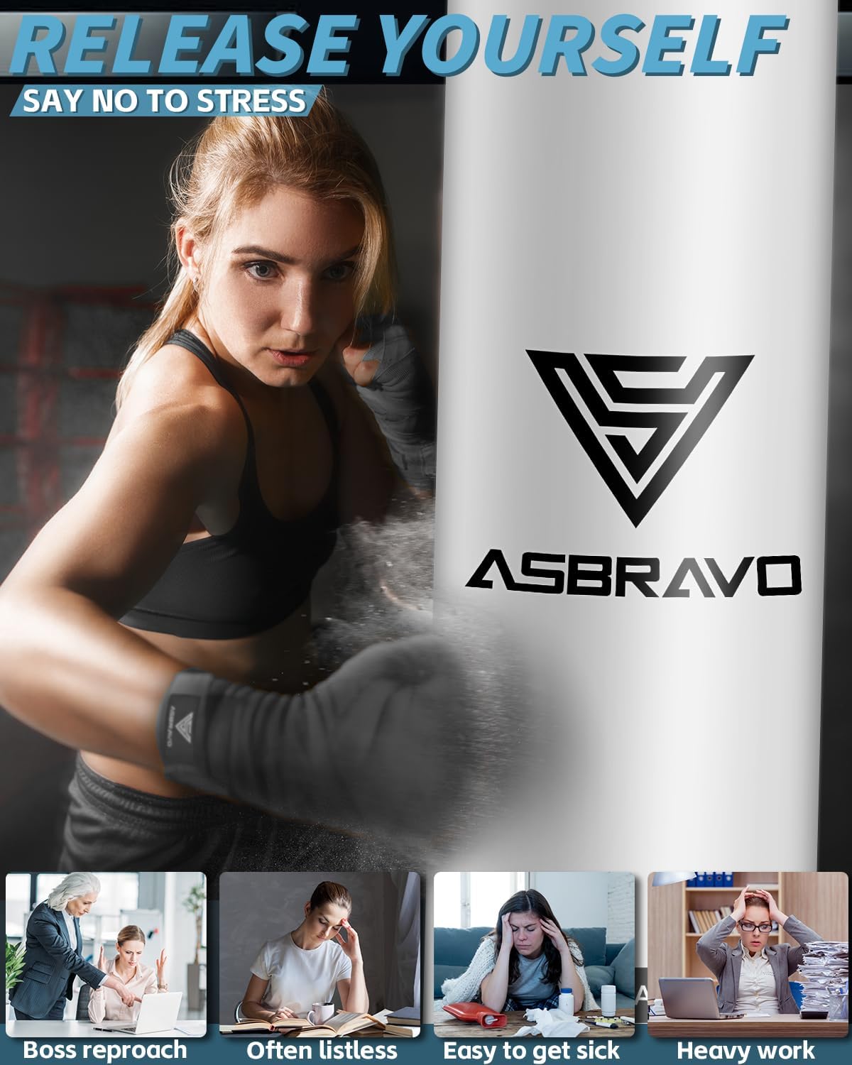 【PU Leather Material】ASBRAVO punching bag is made of high grade PU Leather, ensuring sturdiness and the ability to take on intense punches and kicks. The 4ft punching bag makes an ideal training companion for everyone