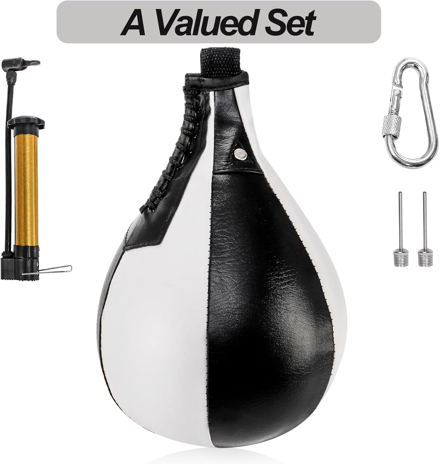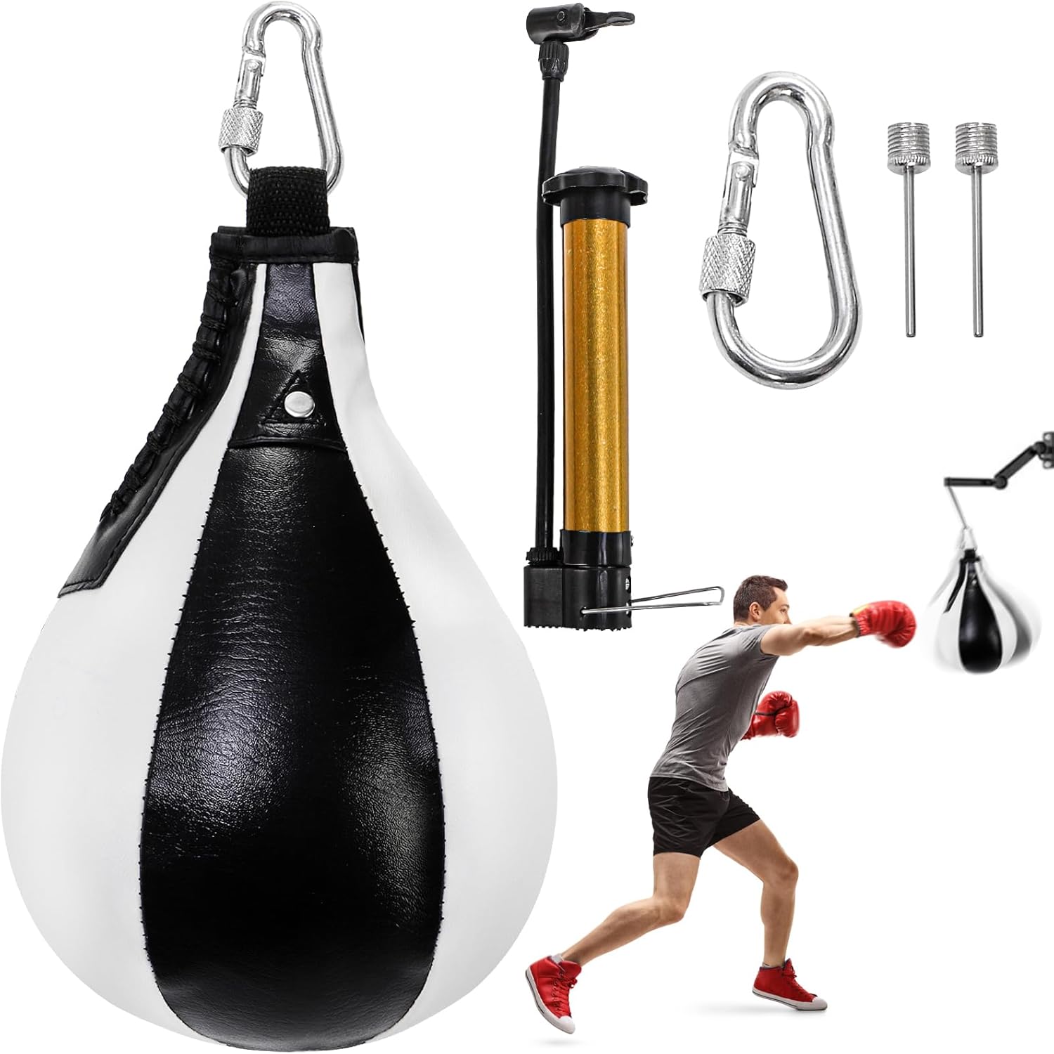 Product Inclusions: You’ll receive 1 punching ball, 1 ring lock, and 1 multipurpose air pump with 2 inflating needles. To inflate the punching ball, simply insert the needle of the pump into the bottom of the ball, secure the needle in the pump, and begin inflating. Remember not to inflate the bag beyond 70% capacity during initial use.