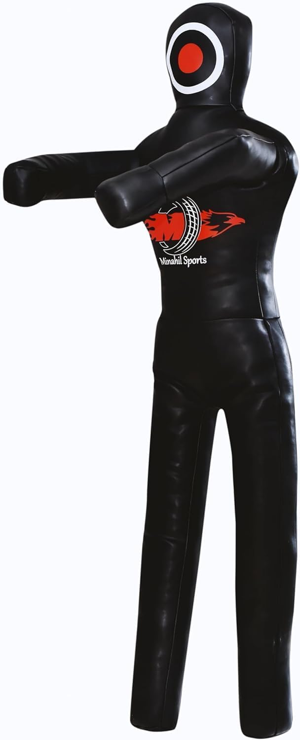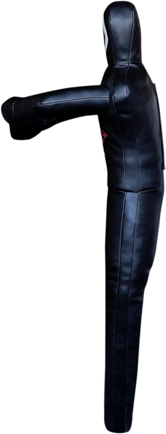 Best quality man shaped dummy specially made in thick grade Artificial Leather. Dummy is specially designed to give you a feel as you are fighting with your opponent while practicing. This dummy is stitched in a way that when filled, It is available in Black Color Double Face for Punching in Submission Style Dummy. UNFILLED 100% guaranteed quality. Great value for money.