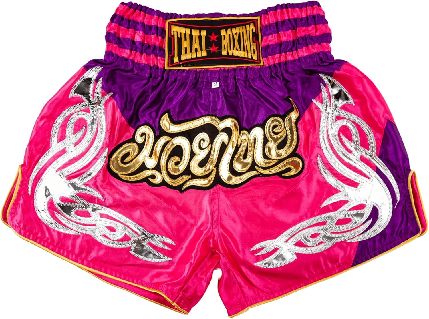 The kickboxing and boxing shorts feature an elastic waistband and drawstring closure for a secure fit, ensuring they stay comfortably in place during training sessions, so you can focus on your workout without worrying about readjusting them.