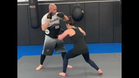 Undefeated MMA prospect Marisa Messer-Belenchia doing mitt work after sparring