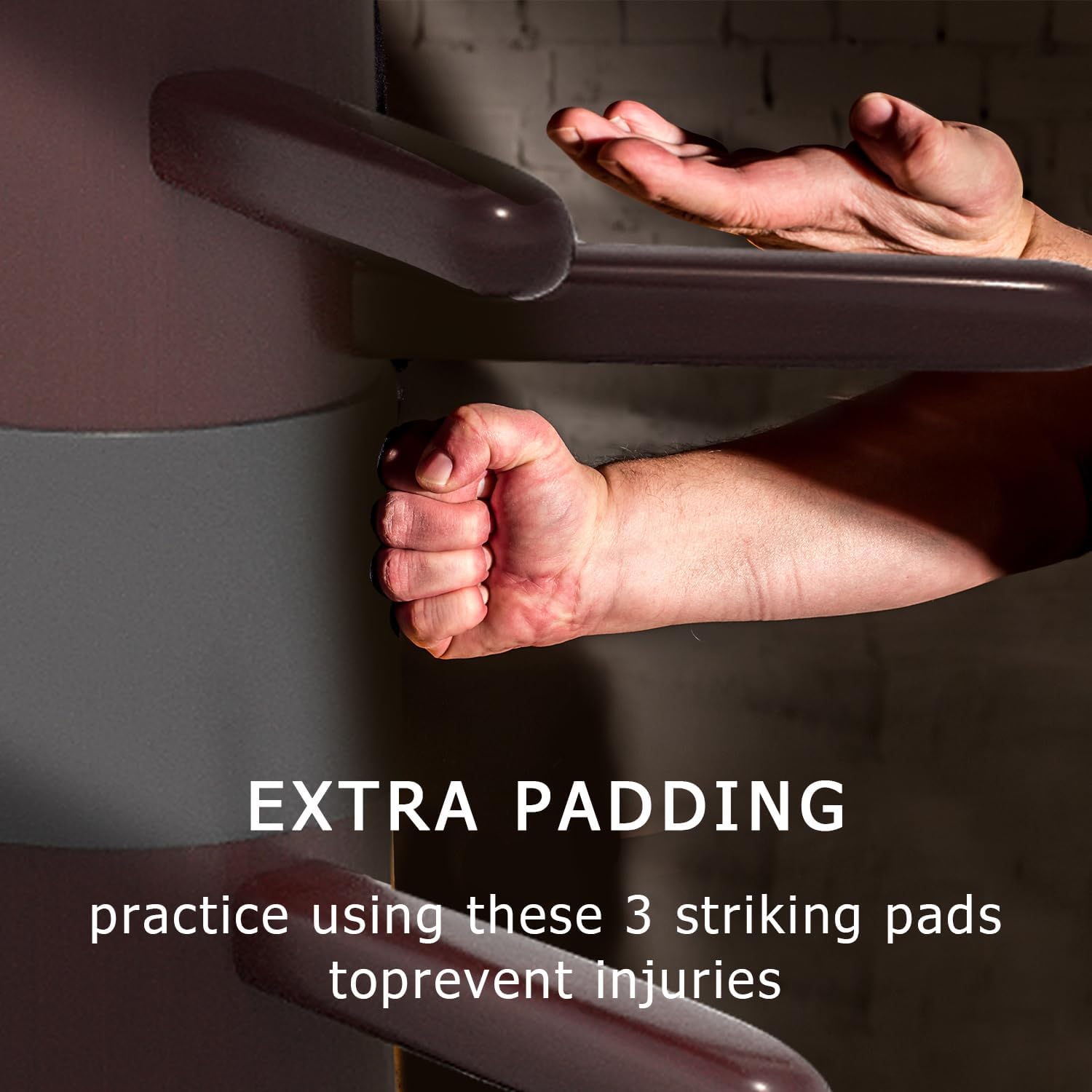 ROBUST CONSTRUCTION – Made from solid natural wood with extra support of tripod base, the wing chun dummy withstands countless hits and resists tipping over. Taking advantage of these, our mook yan jong survives the abuse of the hardest hits season after season.